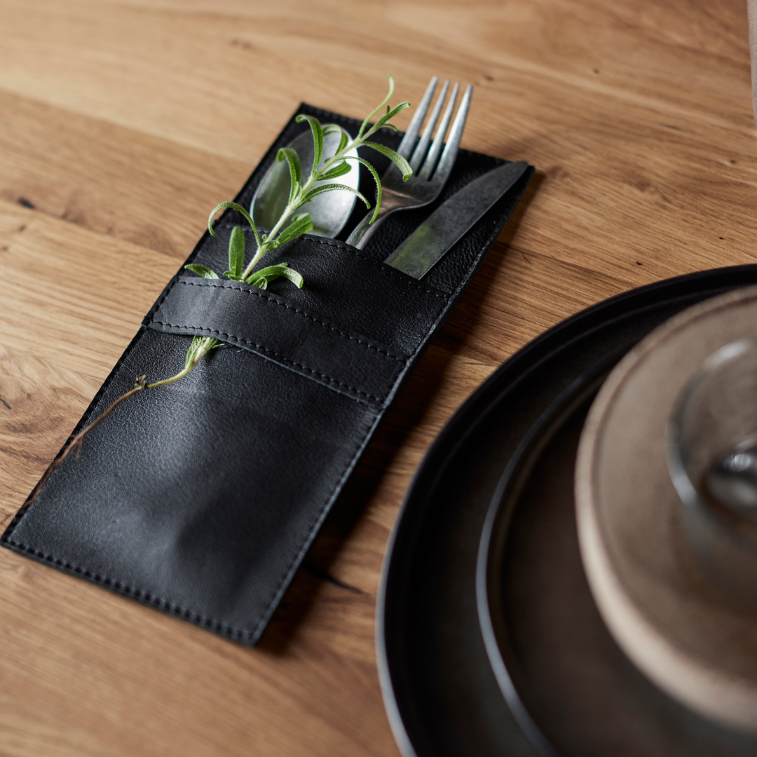 Die Bestecktasche „Camou“ ist aus schwarzem Büffelleder gefertigt. Sie verleiht Ihrem Esstisch einen schicken Touch . Die Taschen werden im 2er-Set verkauft und sind in verschiedenen Farben erhältlich. Sie eignen sich auch hervorragend als Geschenk!