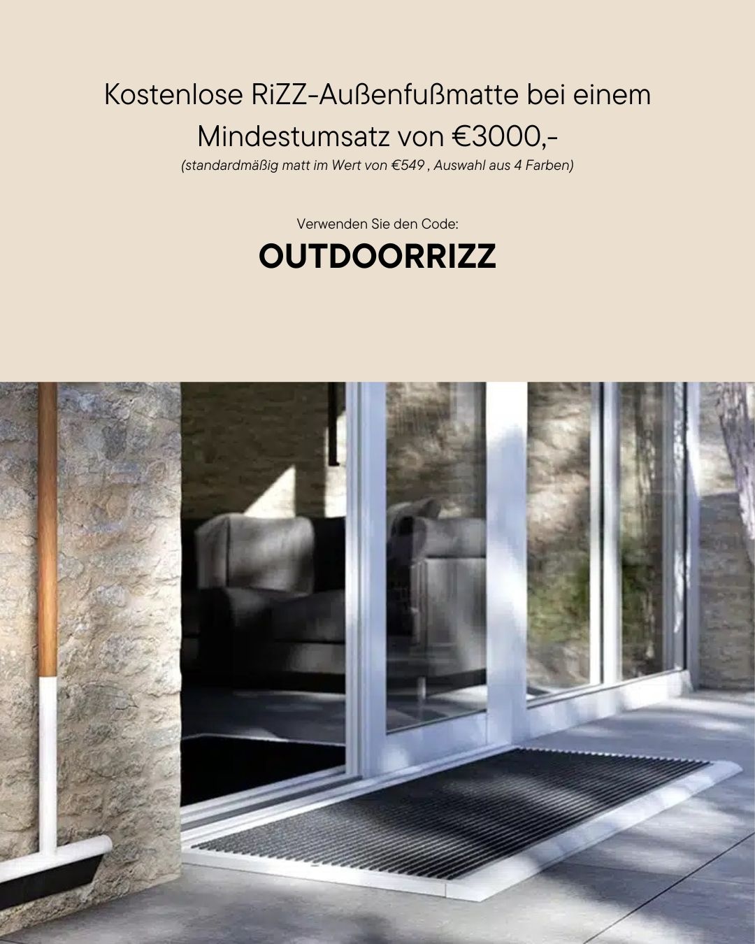 Wählen Sie eine der 4 Farben der RIZZ-Fußmatten für den Außenbereich oder wählen Sie ein Pflegeprodukt, das zu Ihrem Neukauf passt. Brauchen Sie eine Beratung? Schicken Sie uns eine Nachricht über den Chat und wir werden Ihnen sofort helfen.