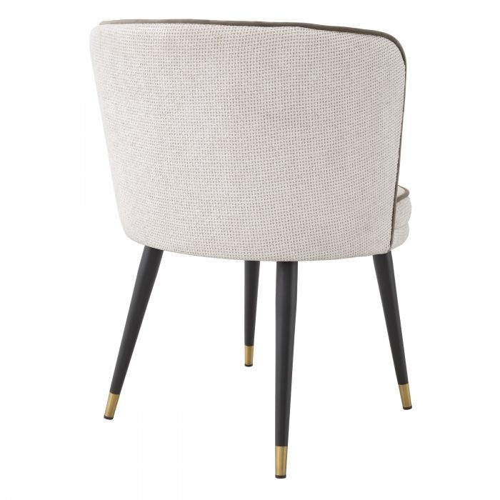 Mit dem schönen Grenada Dining Chair liegen Sie voll im Trend. Dieser wunderschöne Retro-Stuhl hat schwarze, konische Beine mit goldenen Kappen und einen drehbaren Sitz, der mit Lyssa off-white gepolstert ist. Mit seinem Mid-Century Modern-Appeal wird dieser Esszimmerstuhl Ihrem Esszimmer oder Ihrer Küche Vintage-Charme verleihen.