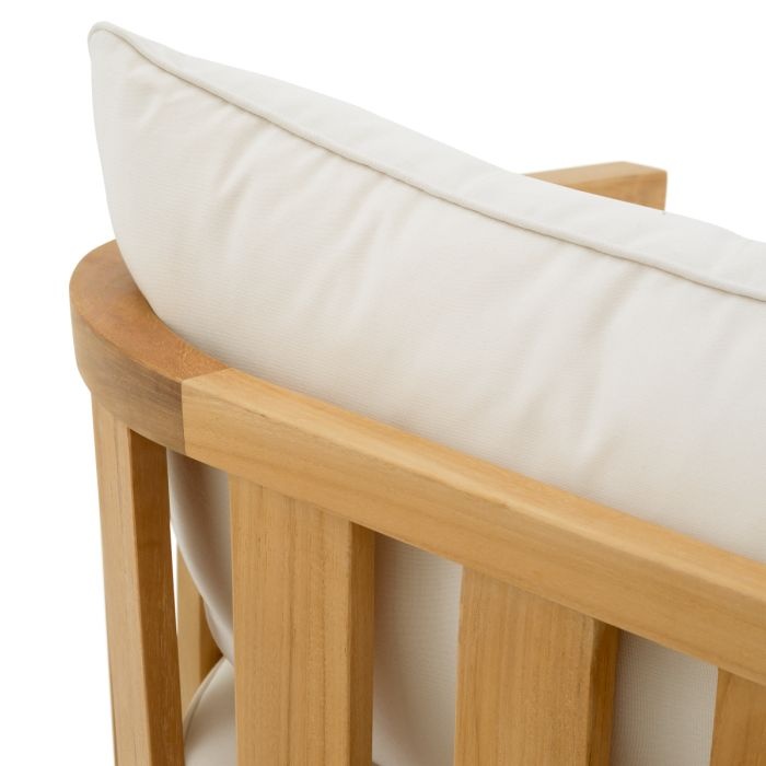 Entdecken Sie die harmonische Kombination aus natürlichem Teakholz und Sunbrella-Stoffkissen im Outdoor-Sessel Aruba. Seine schwebende Silhouette lädt zu Momenten der Ruhe ein, während die weichen, wetterbeständigen Polster in gedeckten Farbtönen das anspruchsvolle Leben im Freien unterstreichen – und mühelose Eleganz und dauerhaften Komfort in einem raffinierten, modernen Design verkörpern.