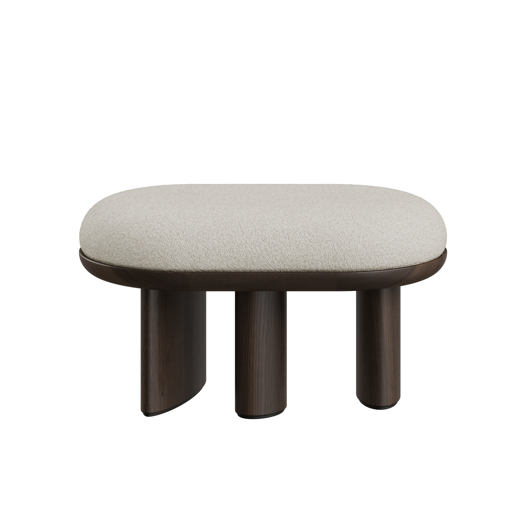 Der Hocker 'Declan' Philo der Marke Dôme Deco hat eine organische Form. Der große Hocker wirkt geräumig und voll, strahlt aber dennoch ein Gefühl von Leichtigkeit aus. Seine einladende Ausstrahlung spiegelt Komfort und Entspannung wider und macht das Curve-Duo ideal für Wohnkultur und formellere Veranstaltungsorte.