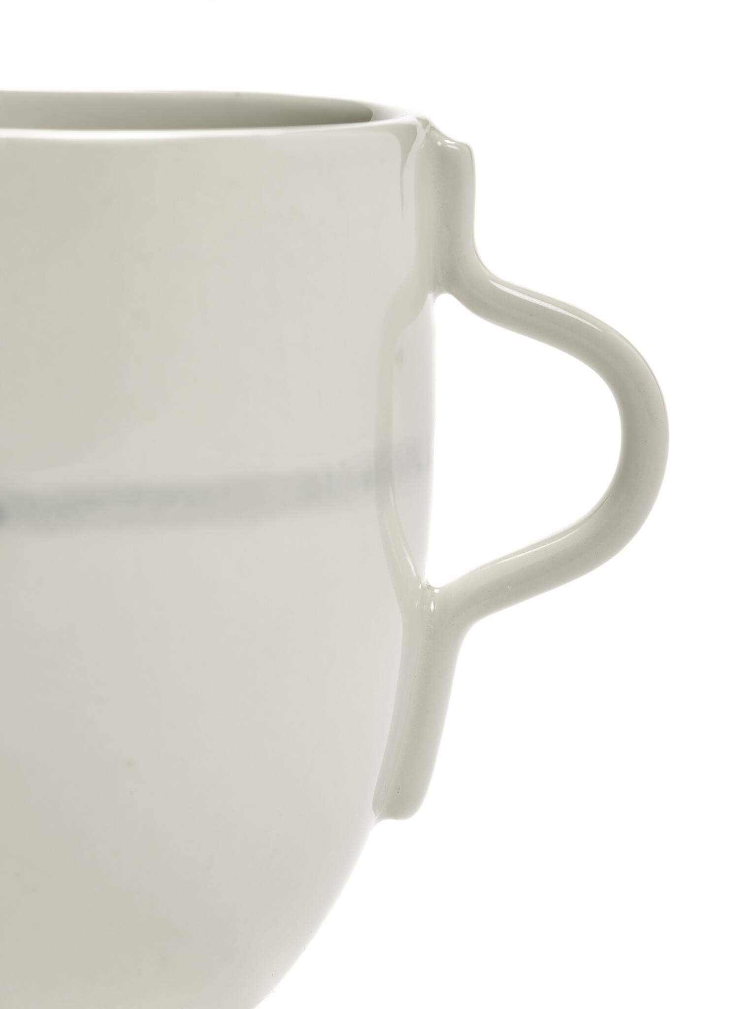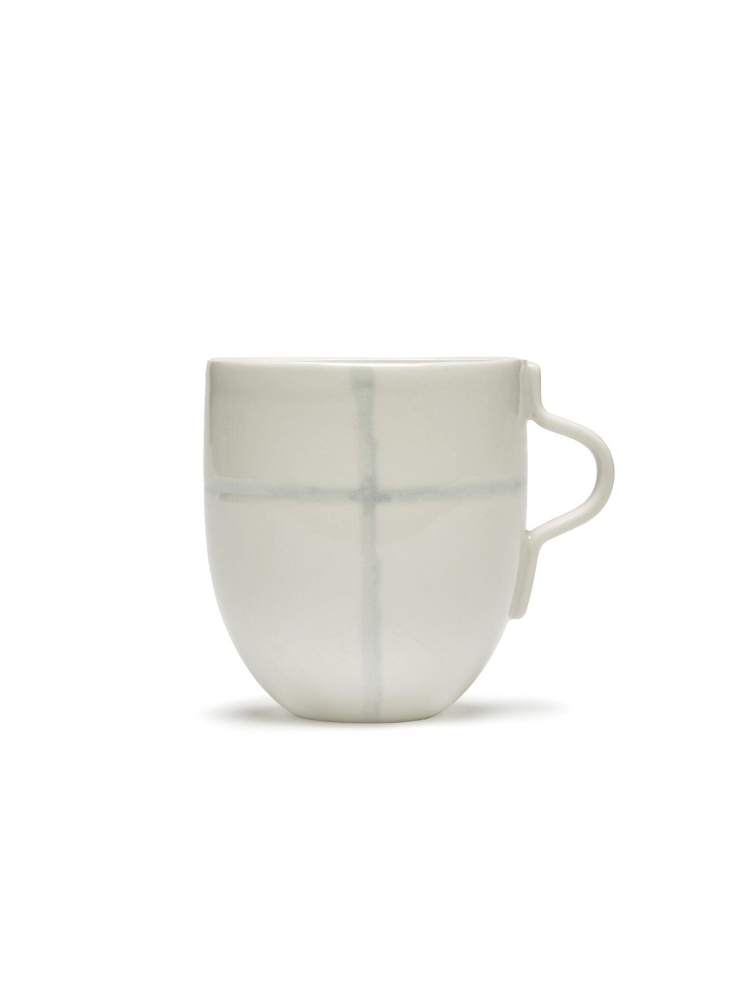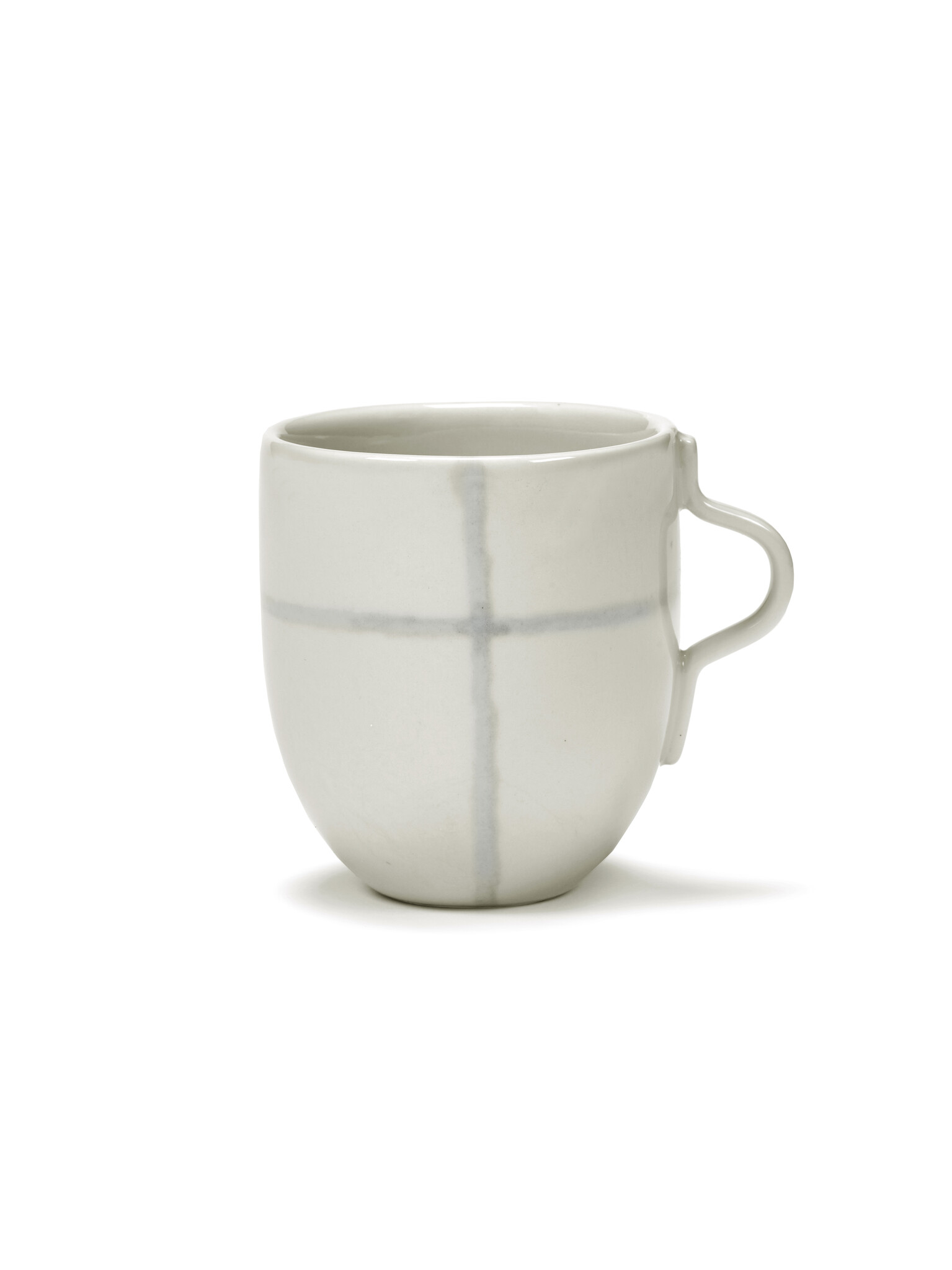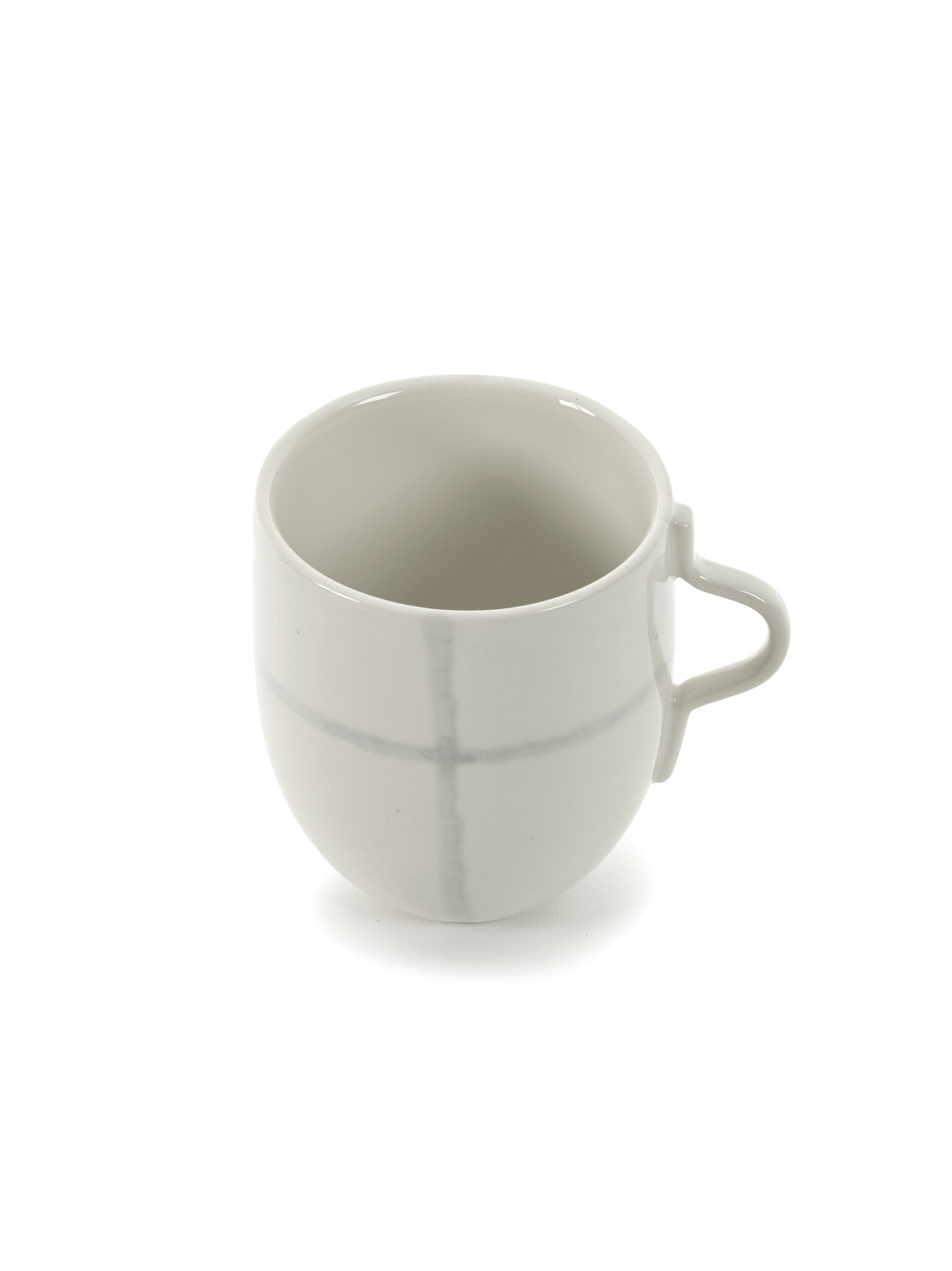Kelly Wearstler ging von einem digitalen grafischen Muster aus, das von Bauhaus-Prinzipien inspiriert ist, um Zuma, ihre Porzellangeschirrserie, zu entwerfen. Jedes Muster wird von Hand auf die Stücke gestempelt, damit sie wie handgemalt aussehen und sich auch so anfühlen, und anschließend wird die Glasur aufgetragen. Die Muster variieren, und Sie können die verschiedenen Formen und Farben - Weiß, Dunkelgrau und sanftes Orange, das als Akzentfarbe verwendet wird - problemlos miteinander kombinieren. Die Becher sind pro 2 Stück verpackt in einer luxuriösen giftbox.