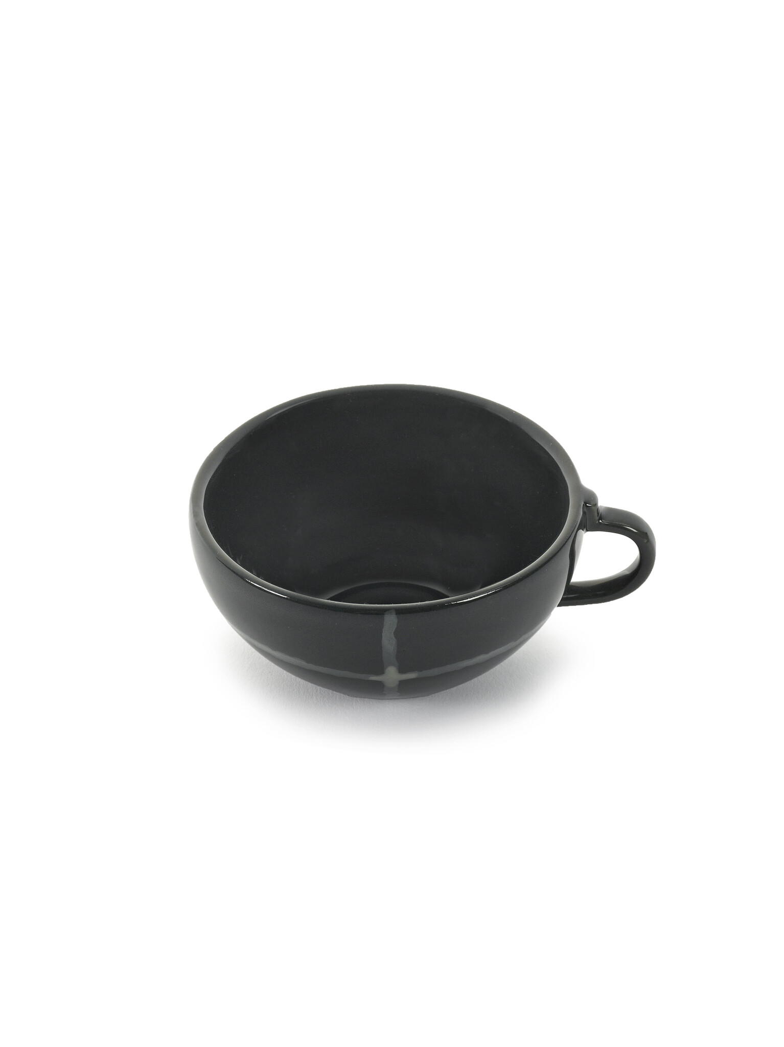 Kelly Wearstler ging von einem digitalen grafischen Muster aus, das von Bauhaus-Prinzipien inspiriert ist, um Zuma, ihre Porzellangeschirrserie, zu entwerfen. Jedes Muster wird von Hand auf die Stücke gestempelt, damit sie wie handgemalt aussehen und sich auch so anfühlen, und anschließend wird die Glasur aufgetragen. Die Muster variieren, und Sie können die verschiedenen Formen und Farben - Weiß, Dunkelgrau und sanftes Orange, das als Akzentfarbe verwendet wird - problemlos miteinander kombinieren. Die Kaffeetassen werden pro 2 Stück in einer luxuriösen giftbox verpackt.