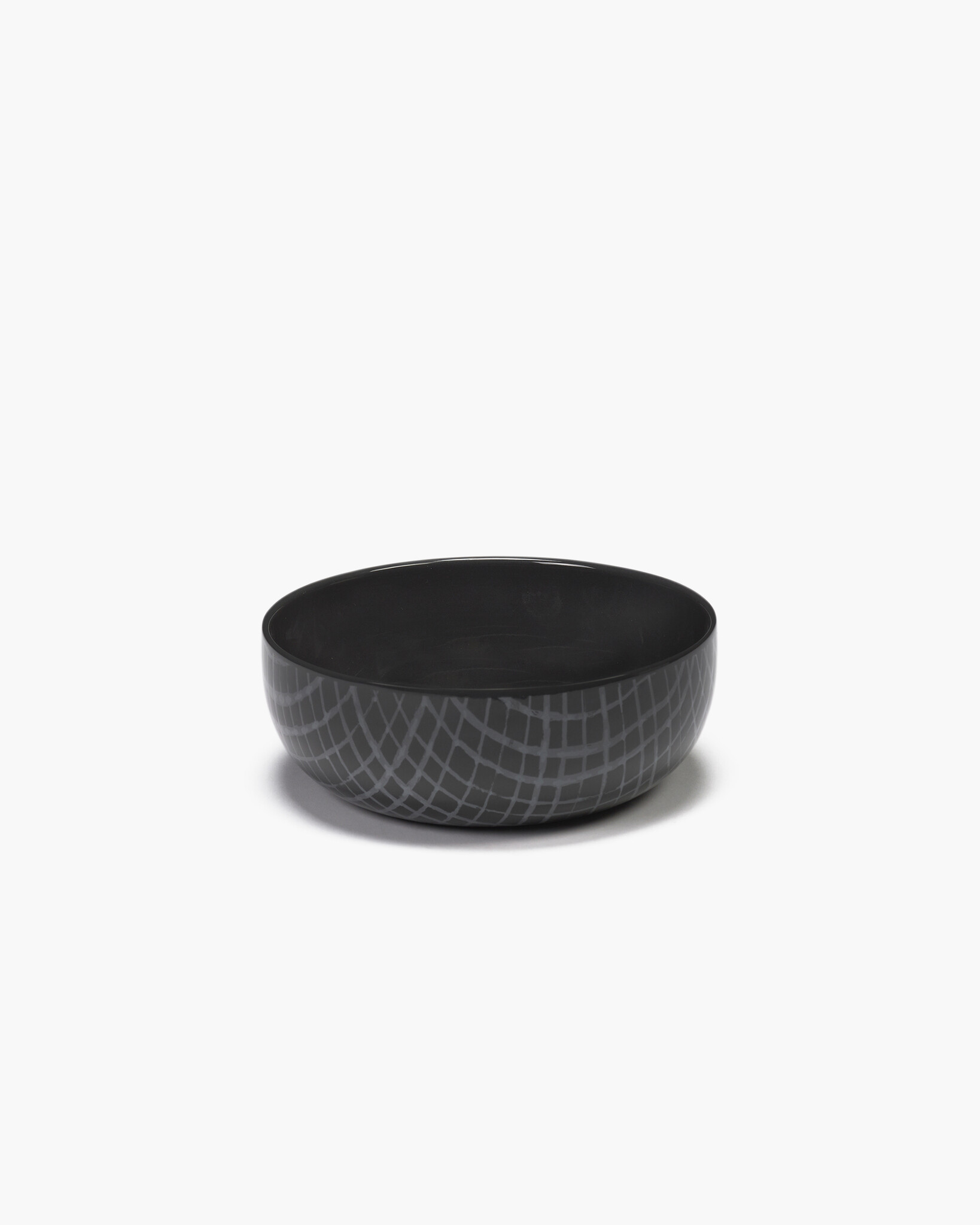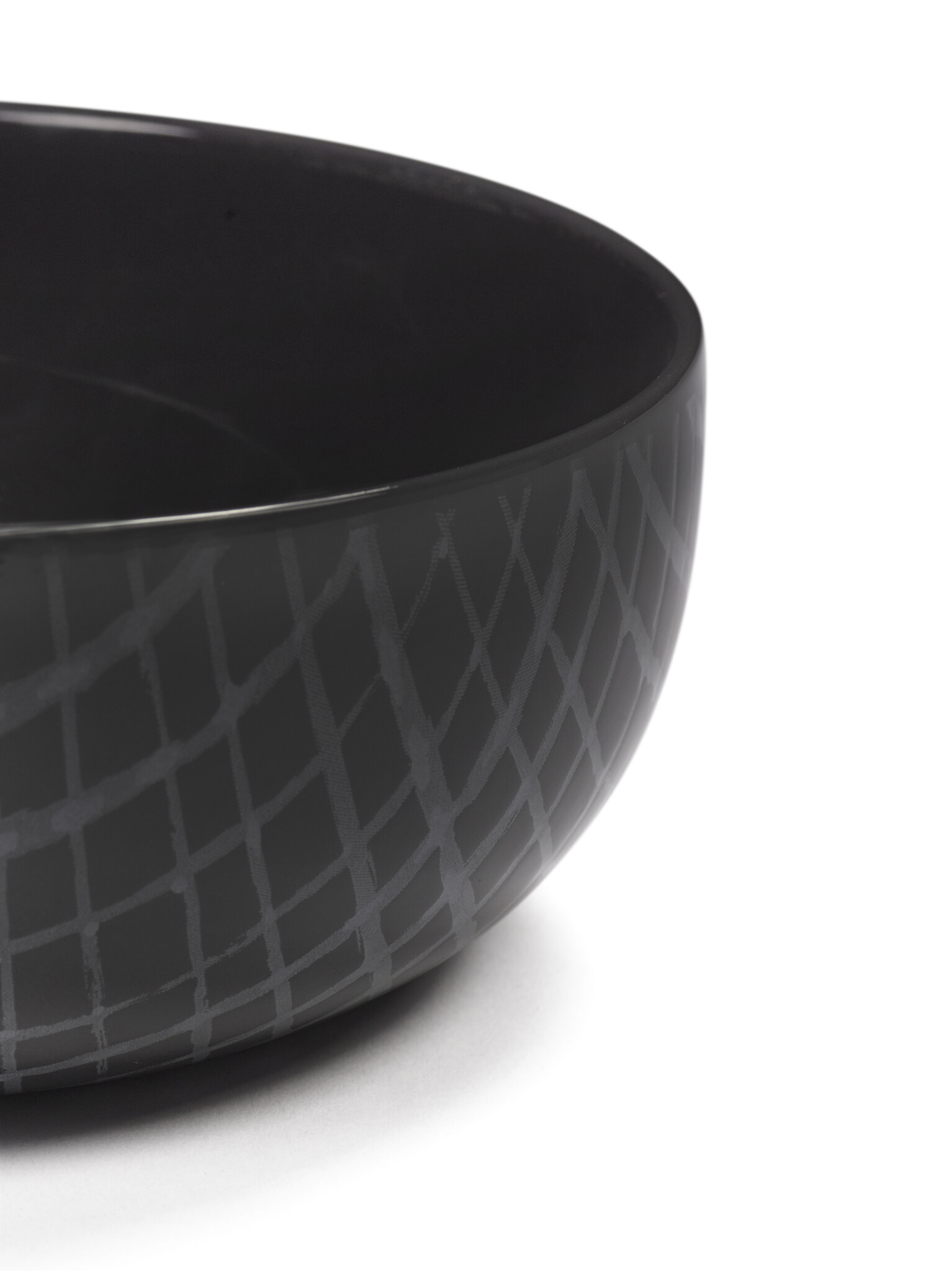 Kelly Wearstler ging von einem digitalen grafischen Muster aus, das von Bauhaus-Prinzipien inspiriert ist, um Zuma, ihre Porzellangeschirrserie, zu entwerfen. Jedes Muster wird von Hand auf die Stücke gestempelt, damit sie wie handgemalt aussehen und sich auch so anfühlen, und anschließend wird die Glasur aufgetragen. Die Muster variieren, und Sie können die verschiedenen Formen und Farben - Weiß, Dunkelgrau und sanftes Orange, das als Akzentfarbe verwendet wird - problemlos miteinander kombinieren. Die Schalen werden pro 2 in einer luxuriösen Giftbox verpackt.