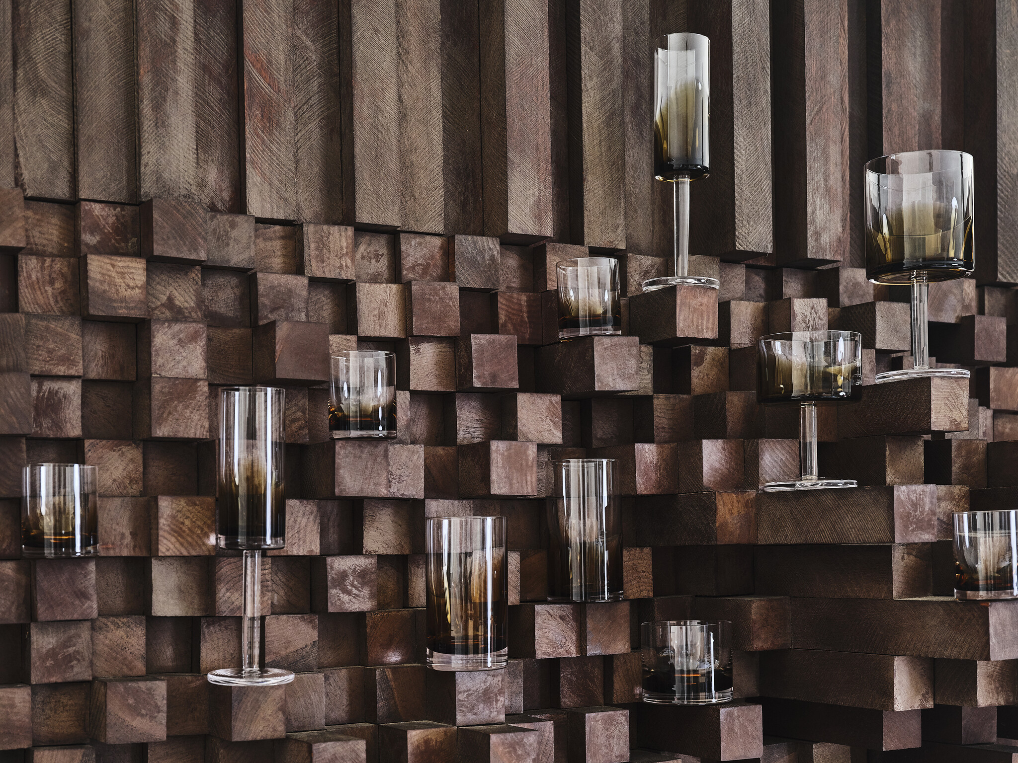 Neben Porzellangeschirr kreierte Kelly Wearstler auch Glaswaren in Bernsteintönen, die bei antiken und Vintage-Glaswaren auf der ganzen Welt so weit verbreitet sind. Der einzigartige Farbverlaufseffekt wird durch die Verwendung von drei Glasschichten erzielt: Die bernsteinfarbene Masse wird zwischen zwei Schichten aus transparentem Glas eingespritzt. Die luftige, luftige Farbe steht in schönem Kontrast zu dem markanten, dicken Glasboden und der schlichten, geraden Form dieser Bechergläser. Die Longdrinks sind zu je 4 Stück in einer luxuriösen giftbox verpackt.