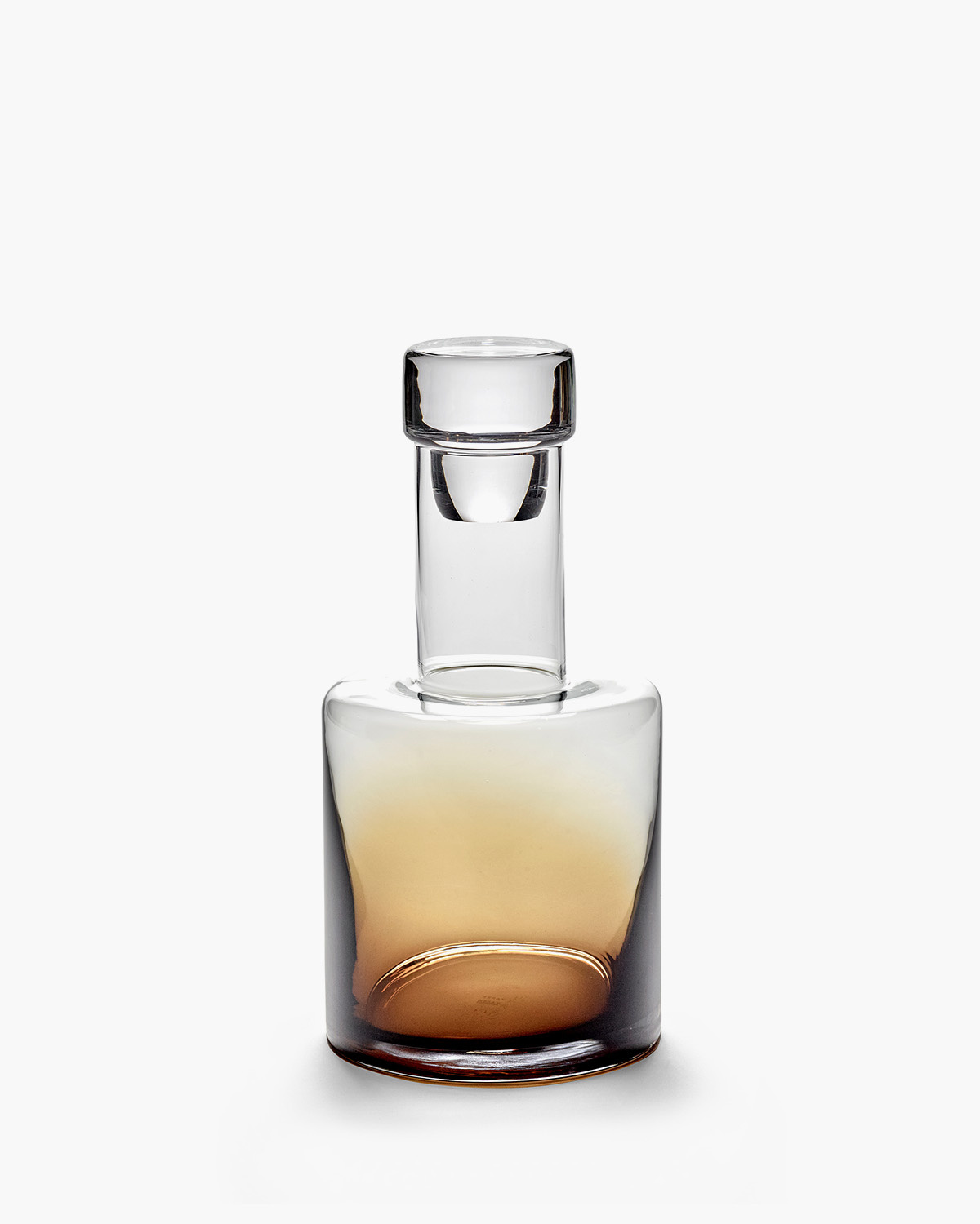Neben Porzellangeschirr kreierte Kelly Wearstler auch Glaswaren in Bernsteintönen, die bei antiken und Vintage-Glaswaren auf der ganzen Welt so weit verbreitet sind. Der einzigartige Farbverlaufseffekt wird durch die Verwendung von drei Glasschichten erzielt: Die bernsteinfarbene Masse wird zwischen zwei Schichten aus transparentem Glas eingespritzt. Die luftige, luftige Farbe steht in schönem Kontrast zu dem markanten, dicken Glasboden und der schlichten, geraden Form dieser Bechergläser. Die Karaffe ist in einer luxuriösen Giftbox verpackt.