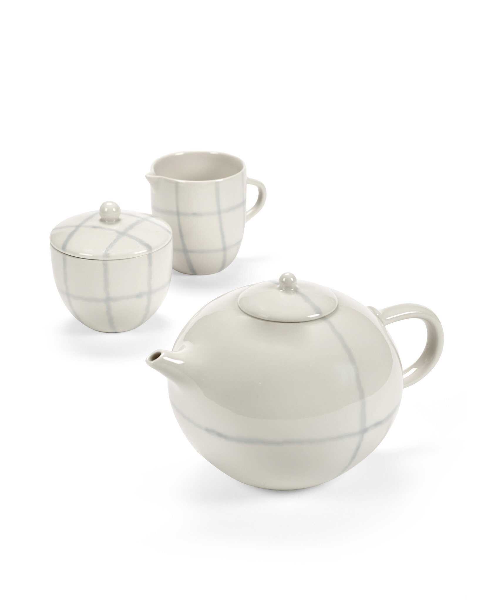Kelly Wearstler ging von einem digitalen grafischen Muster aus, das von Bauhaus-Prinzipien inspiriert ist, um Zuma, ihre Porzellangeschirrserie, zu entwerfen. Jedes Muster wird von Hand auf die Stücke gestempelt, damit sie wie handgemalt aussehen und sich auch so anfühlen, und anschließend wird die Glasur aufgetragen. Die Muster variieren, und Sie können die verschiedenen Formen und Farben - Weiß, Dunkelgrau und sanftes Orange, das als Akzentfarbe verwendet wird - problemlos miteinander kombinieren. Die Dose ist pro in einer luxuriösen giftbox verpackt.