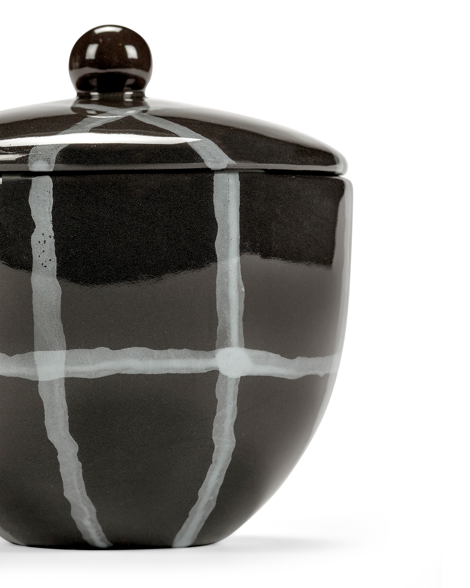 Kelly Wearstler ging von einem digitalen grafischen Muster aus, das von Bauhaus-Prinzipien inspiriert ist, um Zuma, ihre Porzellangeschirrserie, zu entwerfen. Jedes Muster wird von Hand auf die Stücke gestempelt, damit sie wie handgemalt aussehen und sich auch so anfühlen, und anschließend wird die Glasur aufgetragen. Die Muster variieren, und Sie können die verschiedenen Formen und Farben - Weiß, Dunkelgrau und sanftes Orange, das als Akzentfarbe verwendet wird - problemlos miteinander kombinieren. Die Dose ist pro in einer luxuriösen giftbox verpackt.