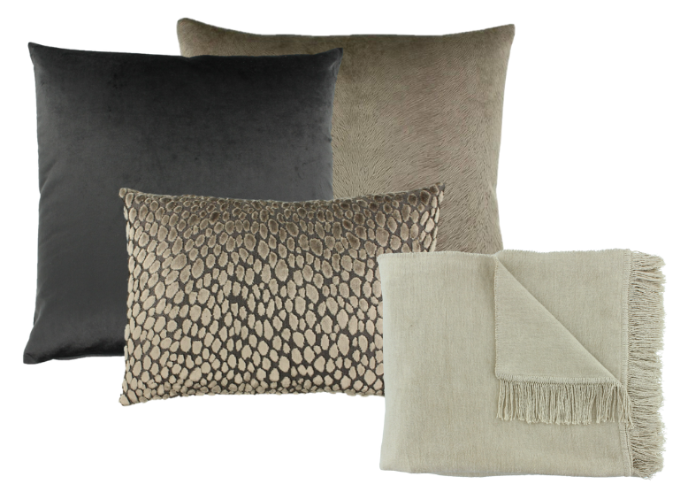 Die Dekokissen Sets wurden mit Sorgfalt zusammengestellt und zielen darauf ab, Sie zu inspirieren. Wagen Sie es verschiedene Prints in Ihrer Einrichtung zu kombinieren! In diesem Set wurden die Farbe Brown/Dark Taupe im verscheidene Prints und Materialen verwendet. Und wir haben auch ein Plaid hinzugefügt, das perfekt passt. Unten auf dieser Seite finden Sie die direkten Links zu den einzelnen Artikeln für weitere Produktinformationen.