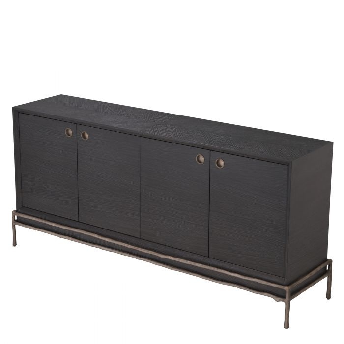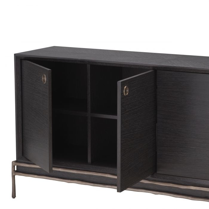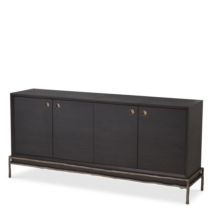 Mit ihrem Gehäuse aus Eichenfurnier in Anthrazit und dem Gestell und den Beschlägen in mittlerem Bronze-Finish wird die Kommode Premier ein Blickfang in Ihrem Wohn- oder Essbereich sein. Getragen von einem schlanken Rahmen mit vier organisch geformten Beinen, hat dieses wunderschöne Möbelstück ein zeitgenössisches Design, das sowohl zu modernen als auch zu Retro-Einrichtungen passt. Hinter vier Türen verbergen sich zwei Fächer mit insgesamt acht Einlegeböden.