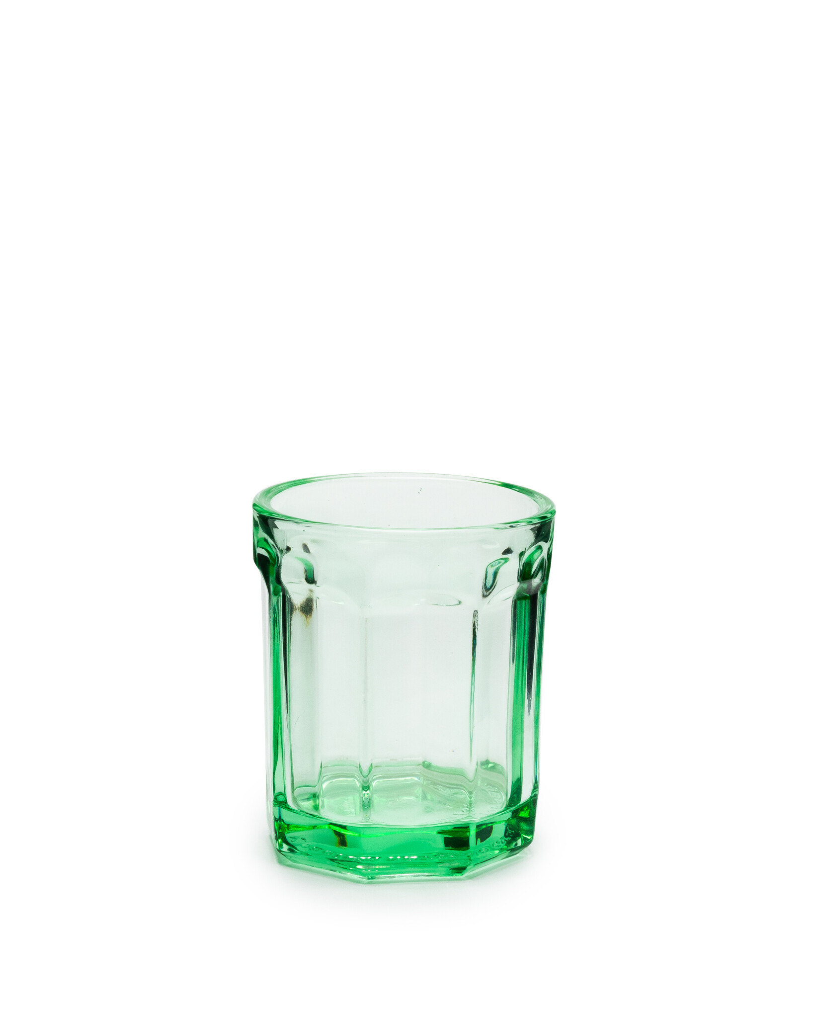 Becher aus grünem Pressglas. Diese faszinierende und robuste Geschirrkollektion aus Pressglas passt perfekt zu Aperitifs, Verkostungen und Mahlzeiten im Rahmen des „Fingerfood“-Konzepts. Dieser Becher ist Teil der Glaskollektion "Fish & Fish“ von Paola Navone. Die Gläser werden pro 4 Stück in einer luxuriösen Giftbox verpackt.