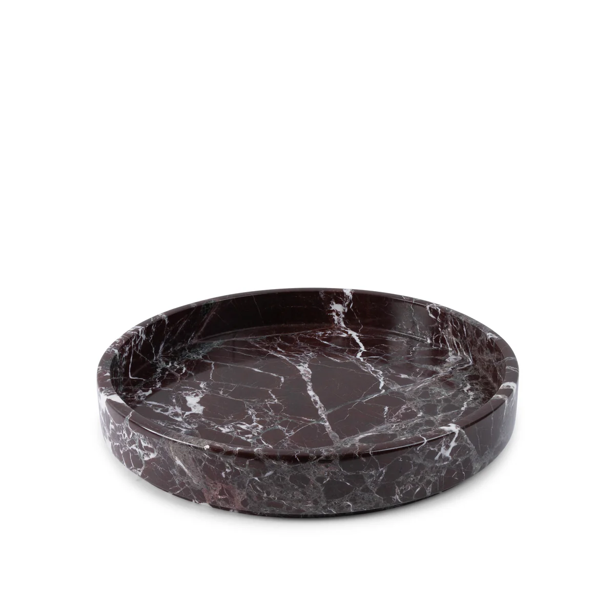 Eine Schale, die mehr ist als nur eine Schale. Mit einem Durchmesser von 40 cm ist unser Catch-All aus burgunderrotem Marmor – auch Bordeaux-Marmor genannt – aus einem einzigen Stück Stein gehauen – jedes mit seinen eigenen dramatischen Adern und seinem natürlichen Charakter. Groß genug, um ein Statement zu setzen, zeitlos genug, um sich in jede Umgebung einzufügen.