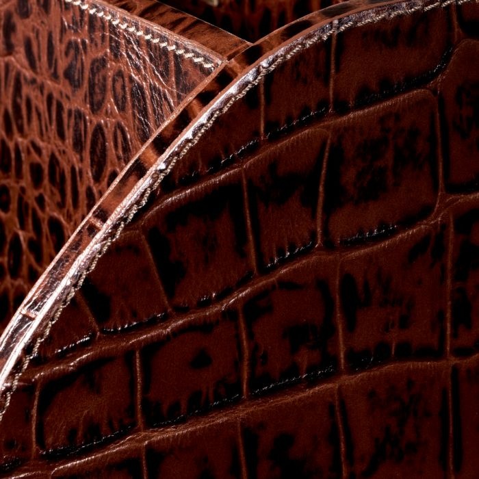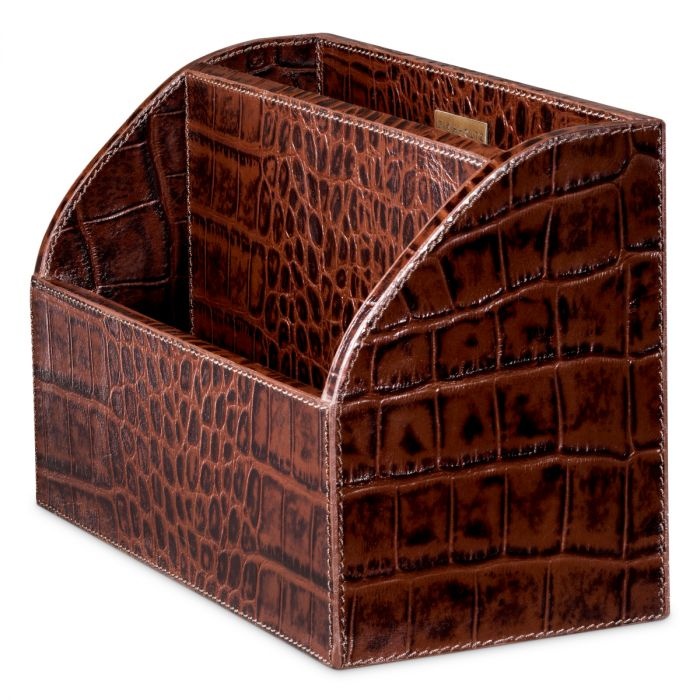 Werten Sie Ihr Büro mit dem Scaleo Schreibtischset von Eichholtz auf – die perfekte Kombination aus Luxus und Organisation. Das dreiteilige Set umfasst einen Abfalleimer, einen Stiftehalter und einen eleganten Organizer für Ihre Dokumente und Unterlagen. Alle Teile sind aus antikbraunem Leder mit einer edlen Krokodilprägung gefertigt. Erhältlich in Braun und Schwarz, vereint das Set Funktionalität und Eleganz an Ihrem Arbeitsplatz und sorgt für Ordnung.