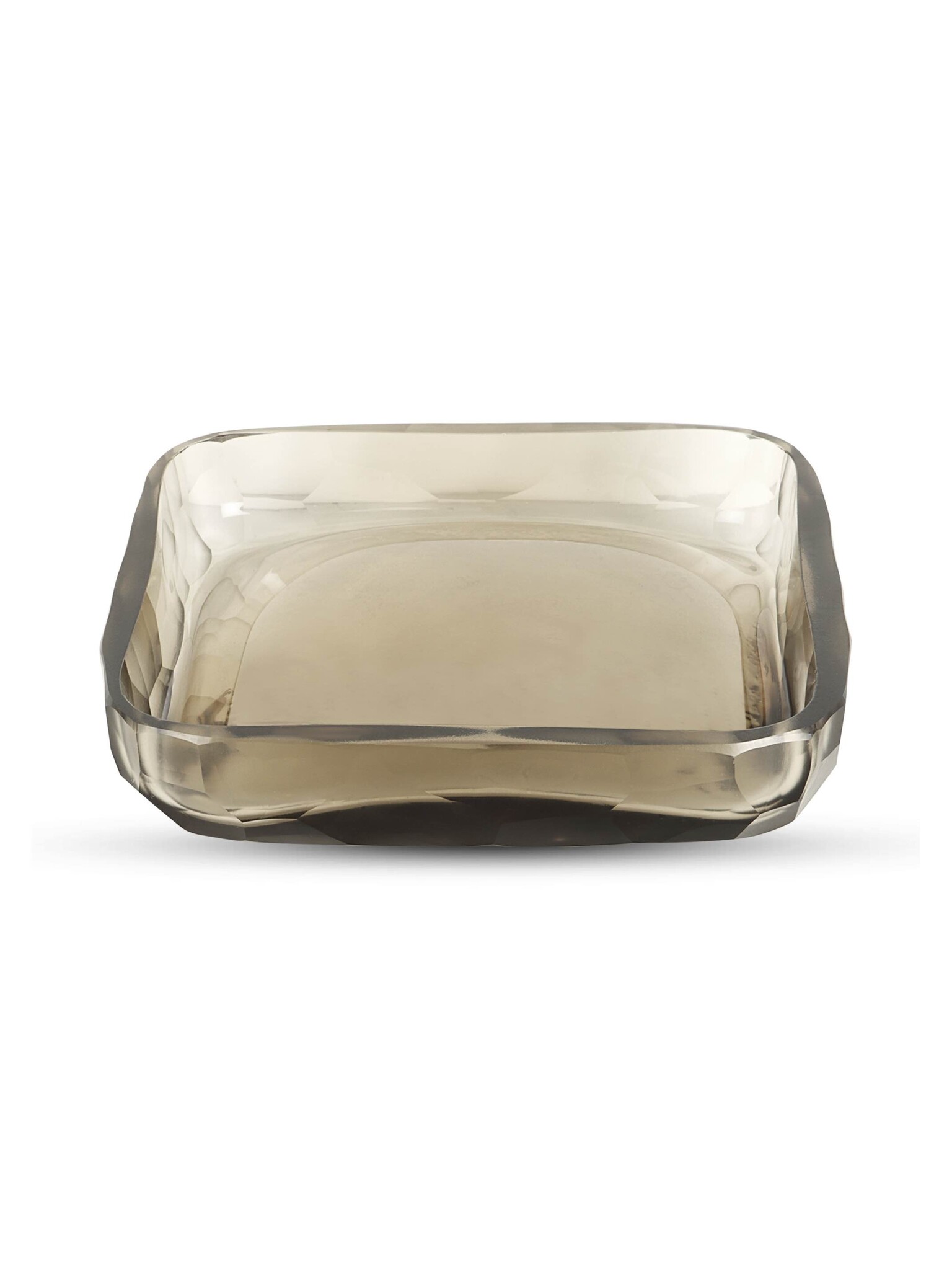 Die Seifenschale hat eine moderne Rauchfarbe und erhält den luxuriösen Look durch die traditionelle Herstellungsweise. Jedes Stück ist mundgeblasen und handbearbeitet, daher sind kleine Unvollkommenheiten Teil des Produkts.