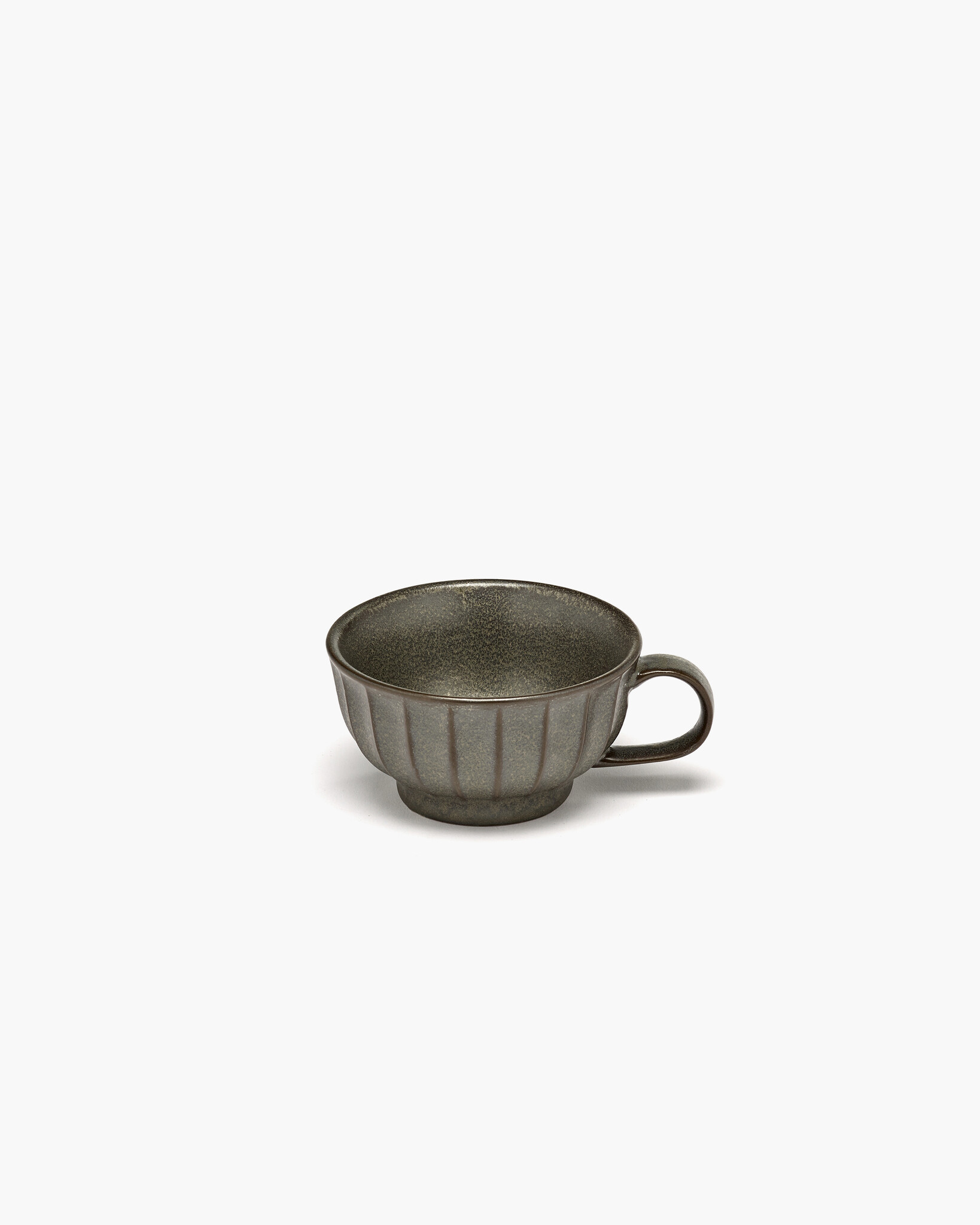 Diese grünen Cappuccinotassen aus der Inku-Kollektion von Sergio Herman kombinieren ein geripptes Design mit einem Wabi-Sabi-Look. Perfekt für eine entspannte Kaffee- oder Teestunde. Die Cappuccinotassen werden pro 4 Stück in einer luxuriösen Giftbox verpackt.