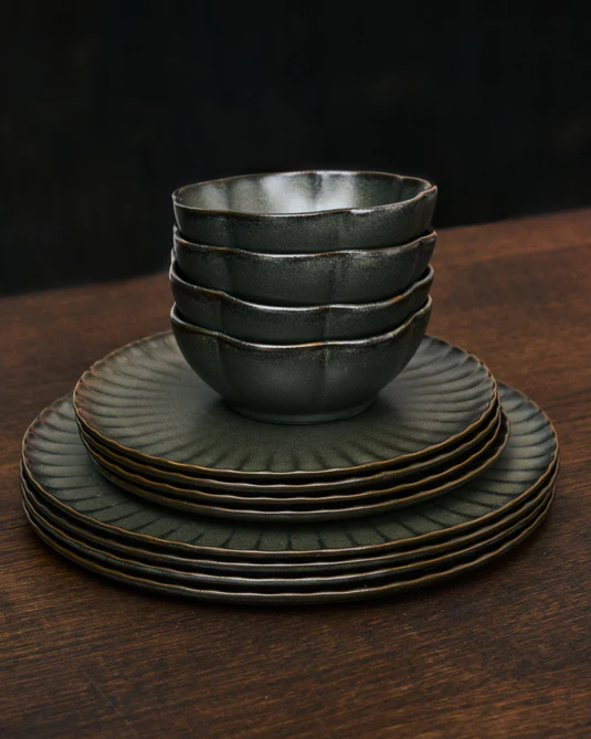 Die grünen gerippten Inku-Schalen von SergioHerman sind nicht nur ideal, um Gerichte schön anzurichten. Das einzigartige Aussehen jedes Stücks verleiht ihm eine besondere und persönliche Note. Die Schalen werden pro 4 Stück in einer luxuriösen Giftbox verpackt.