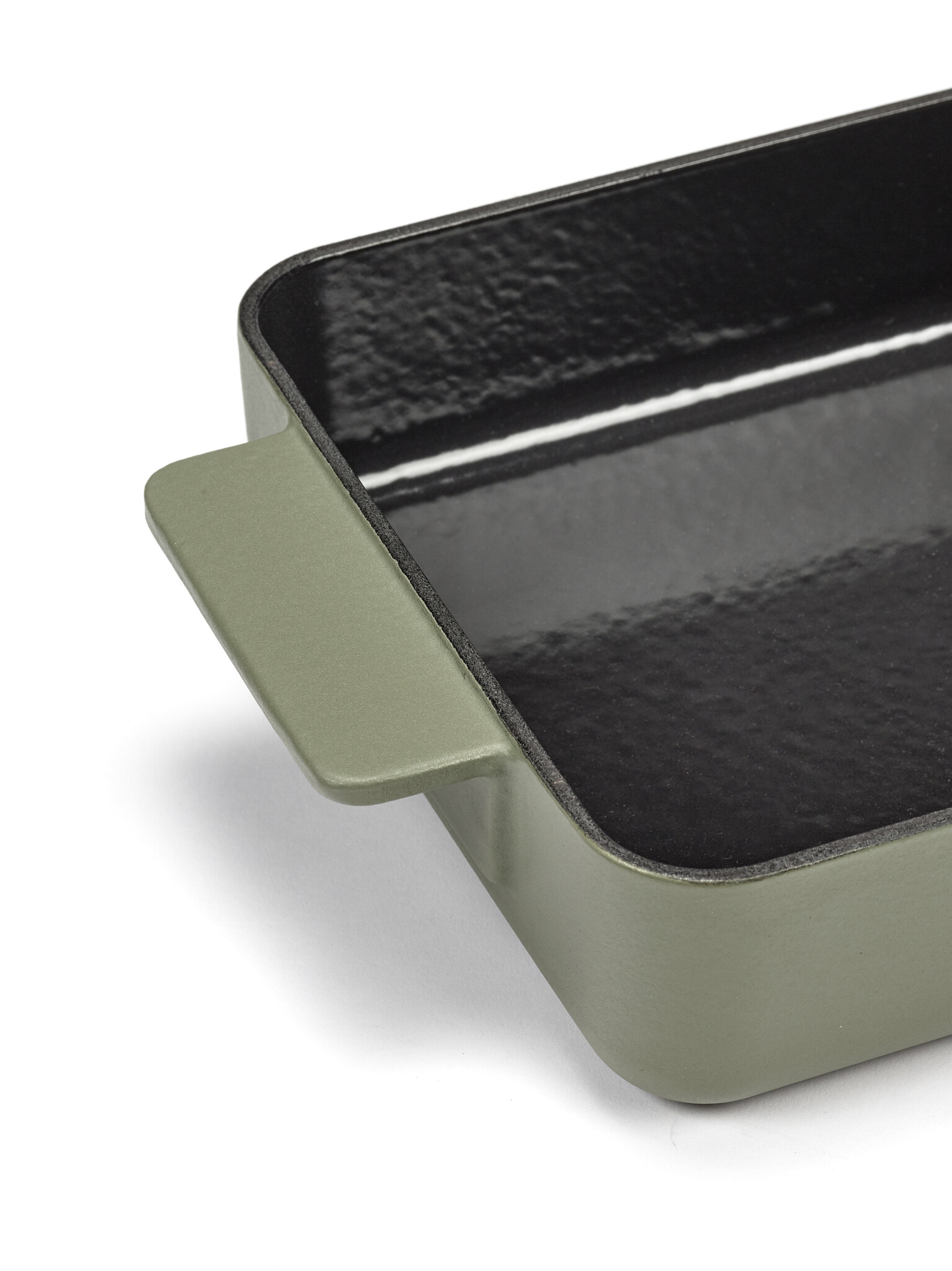 Die gusseisernen Auflaufformen aus der Surface-Kollektion sind ein echter Hingucker und machen sich gut auf Ihrem Tisch. Die raue Oberfläche auf der Außenseite der Auflaufformen steht in schönem Kontrast zur glatten Glasur auf der Innenseite. Die camogrüne Farbgebung unterstreicht die robuste Ausstrahlung, die die Surface-Kollektion so auszeichnet. Die Auflauf ist Stück in einer luxuriösen Giftbox verpackt.