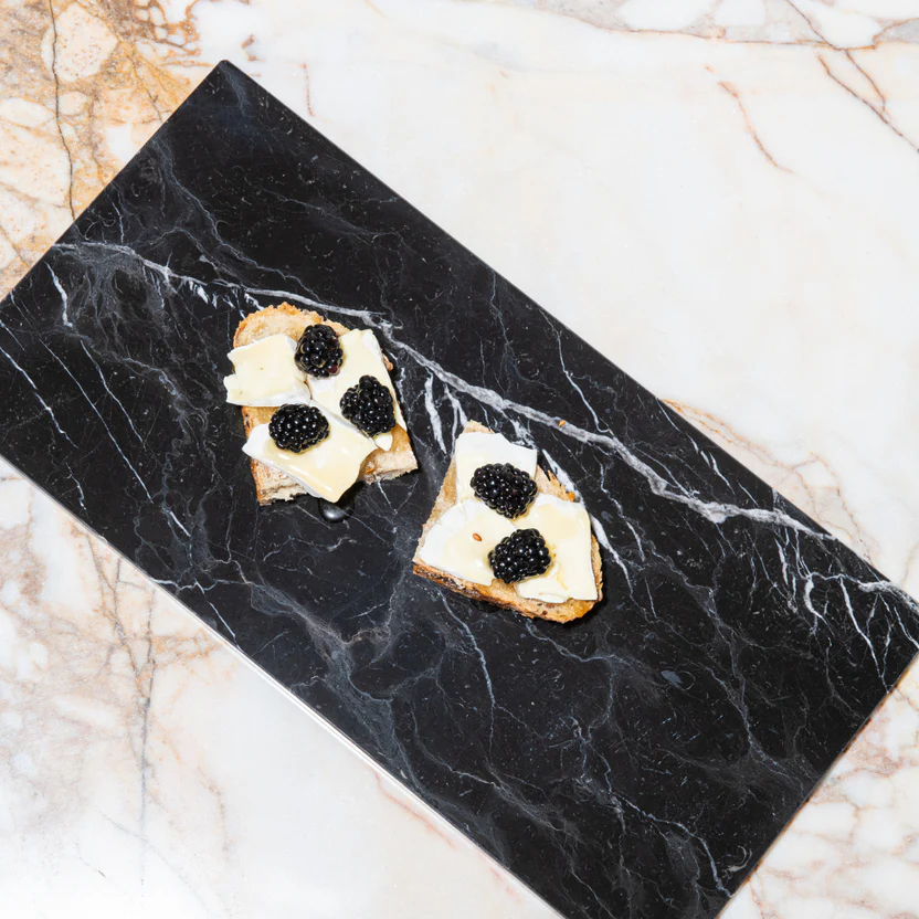 Unser mittelgroßes Servierbrett aus schwarzem Marmor eignet sich perfekt zum Servieren von leckeren Tapas, köstlichen französischen Käsesorten oder anderen Fingerfood-Häppchen mit einem Hauch von Raffinesse. Der edle schwarze Marmor mit seinen markanten weißen Adern macht es nicht nur zu einem funktionalen Servierbrett, sondern auch zu einem stilvollen Blickfang für jeden Anlass.