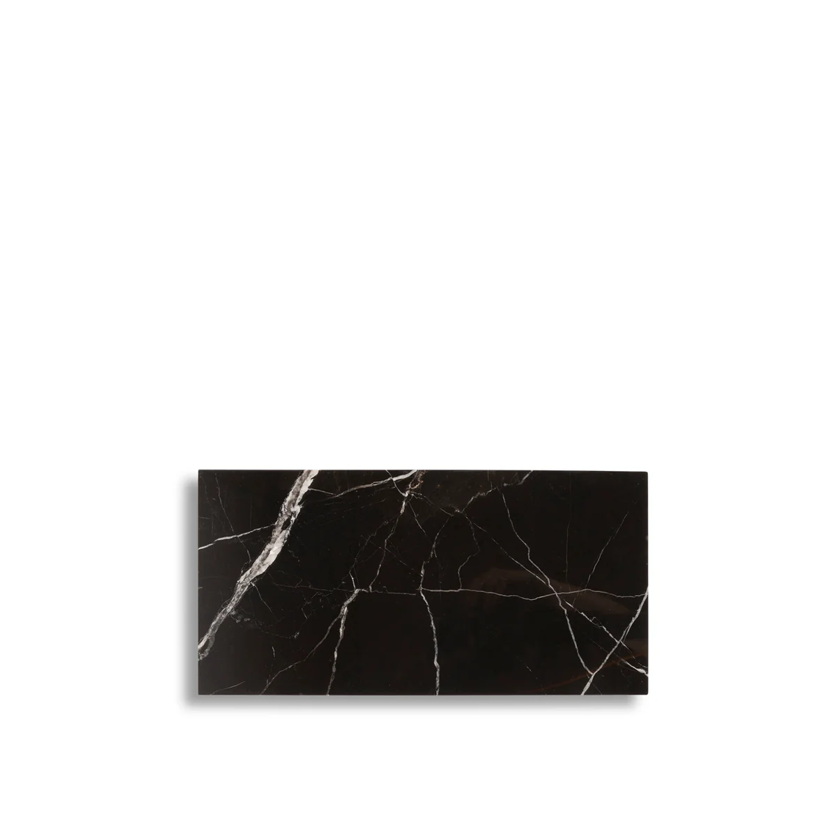 Hergestellt aus hochwertigem schwarzem Marmor, weist dieses Brett natürliche Adern mit vereinzelten braunen und grauen Farbtönen auf, wodurch jedes Exemplar ein Unikat ist. Die Hochglanzoberfläche unterstreicht die luxuriösen schwarzen Farbtöne des Steins, während das Produkt von Hand veredelt wurde, um ihm einen zusätzlichen Hauch von Handwerkskunst zu verleihen.