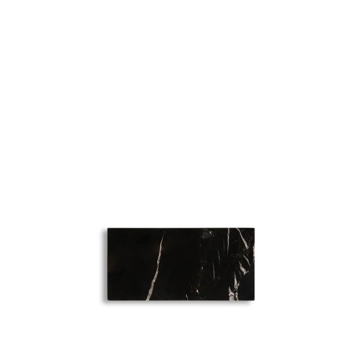 Dieses aus natürlichem schwarzem Marmor gefertigte Brett weist satte Schwarztöne mit markanten weißen Adern und vereinzelten braunen und grauen Nuancen auf, wodurch jedes Stück ein Unikat ist. Die Hochglanzoberfläche verstärkt das tiefe Schwarz des Steins und sorgt für einen luxuriösen Look. Jedes Brett wird von Hand veredelt, was es zu einem einzigartigen Meisterwerk macht.