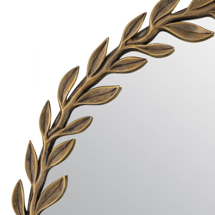 Der Duras-Spiegel aus Messing im Vintage-Look ist ein wahres Kunstwerk an der Wand, das mit einem Blätterkranz ein botanisches Aussehen erzeugt. Dieser dekorative Spiegel ist ein idealer Akzent und eine großartige Lösung, um Ihren Raum zu erhellen oder ihn größer erscheinen zu lassen, da er dazu beiträgt, das Licht im Raum zu reflektieren.