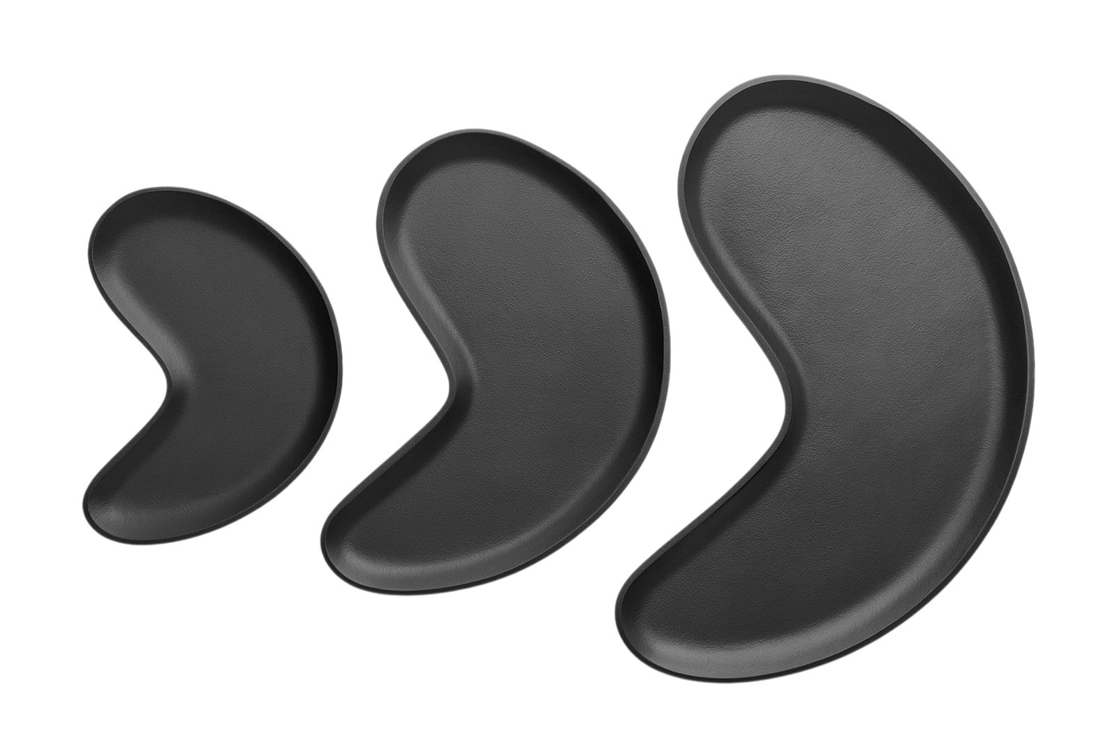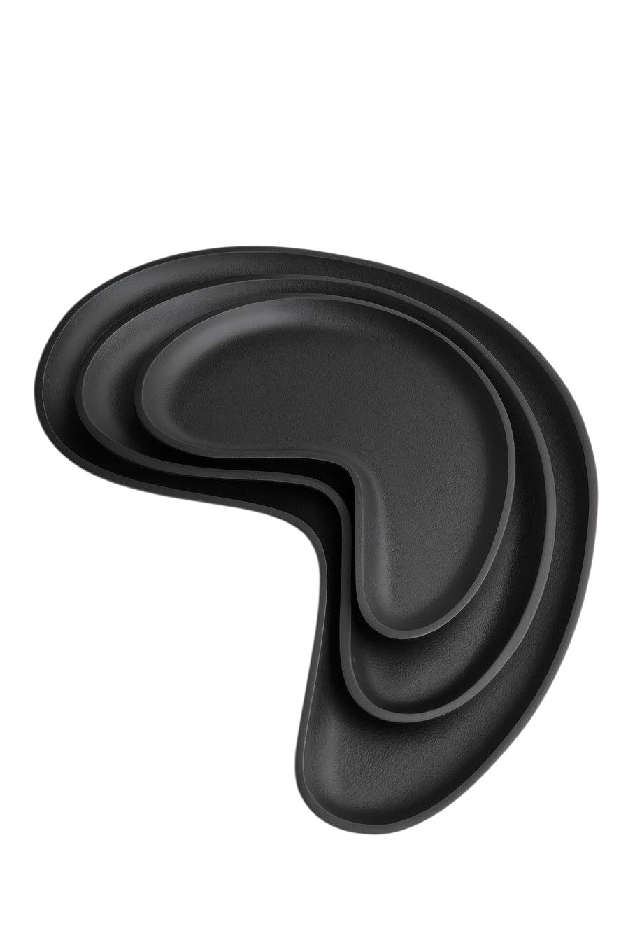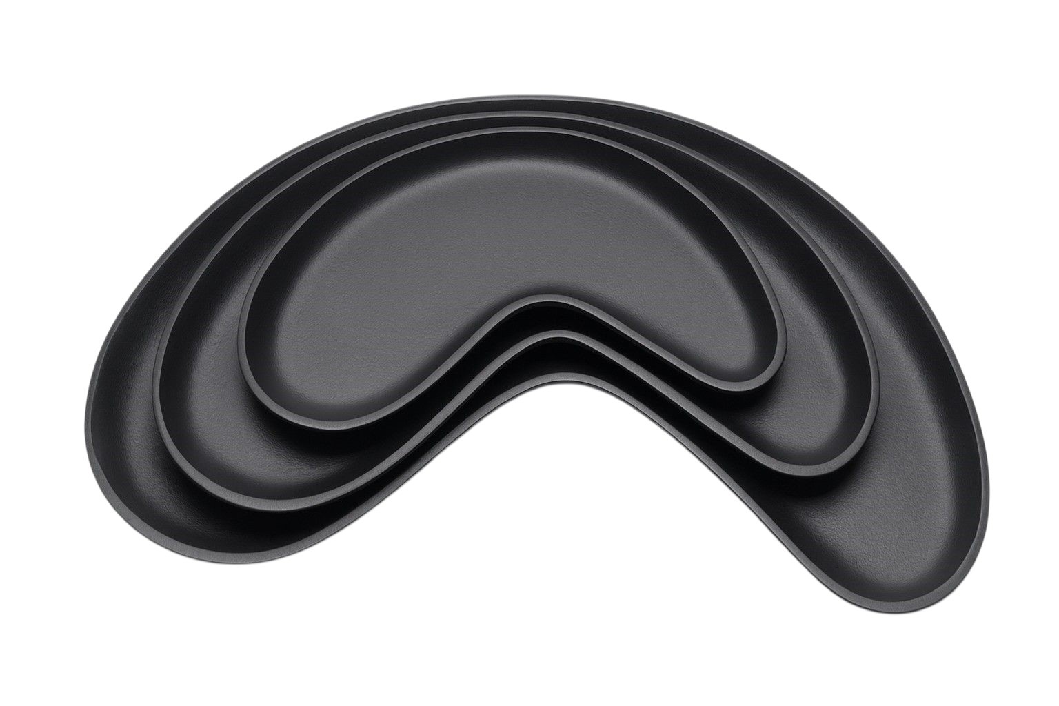 Das Tablett Ellan, das auf der Nierenform basiert, verjüngt sich auf einer Seite. Die Ränder des Tabletts laufen nach außen hin aus, wodurch ein schöner Übergang entsteht.