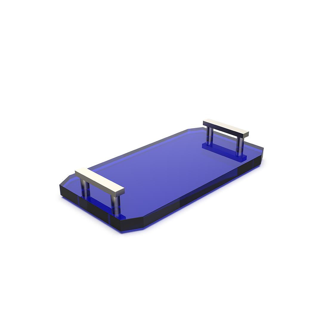 Tablett 'Kristall" - Nickel satiniert / Capri blau