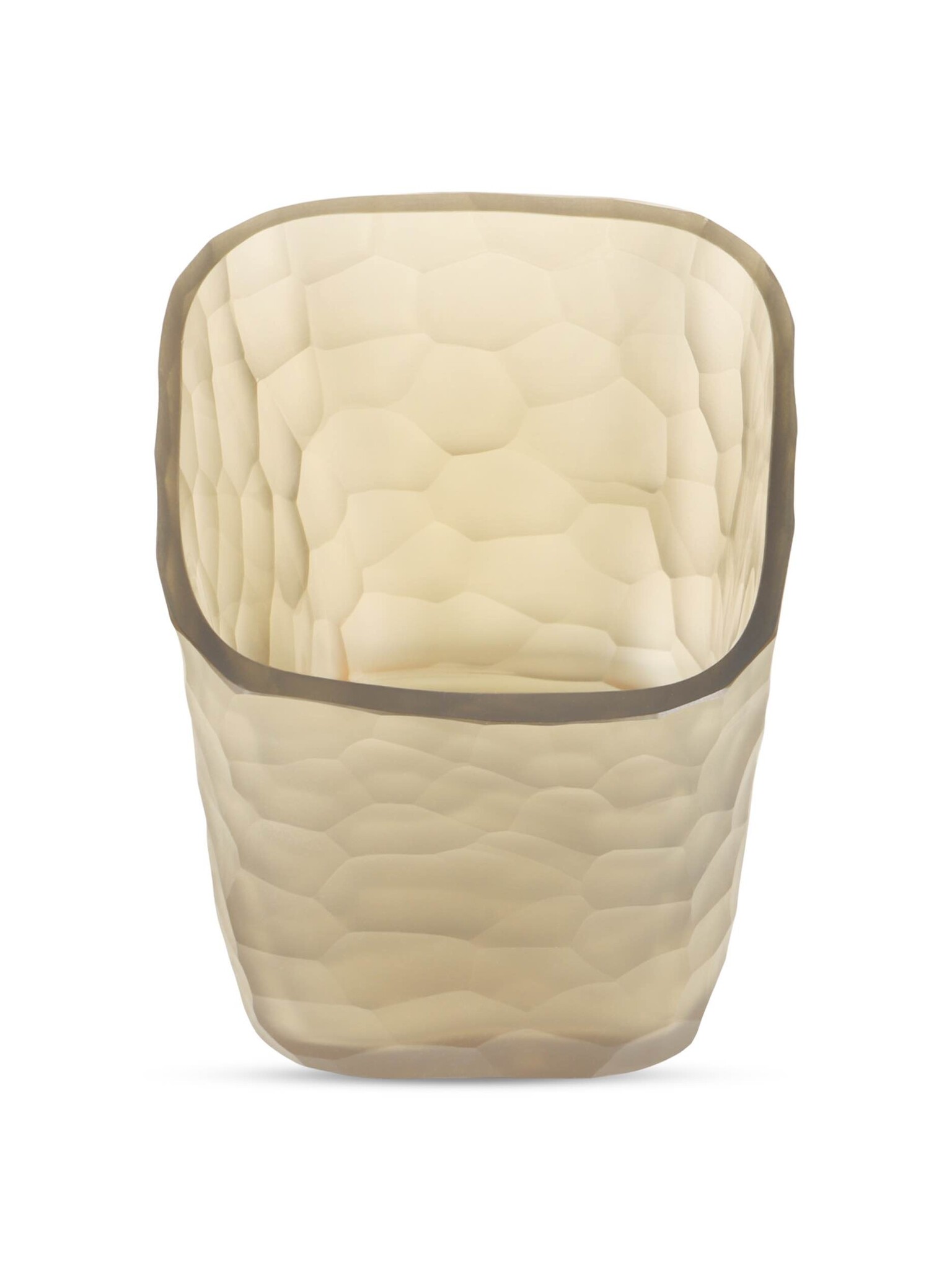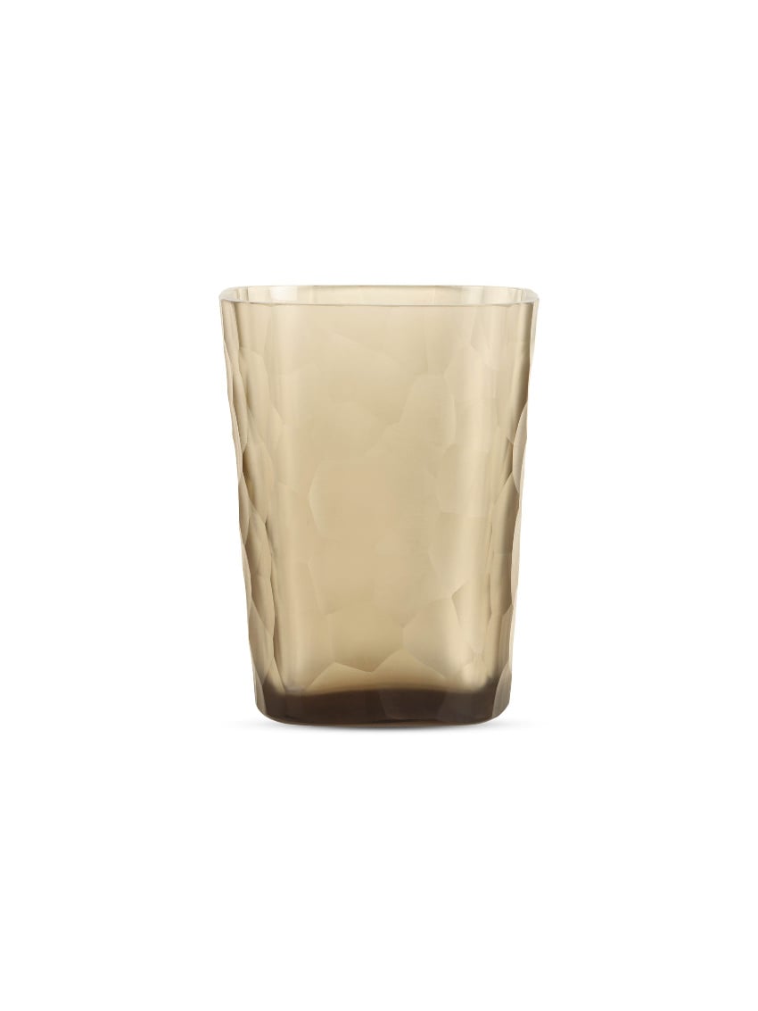 Der Becher hat eine moderne Rauchfarbe und erhält den luxuriösen Look durch die traditionelle Herstellungsweise. Jedes Stück ist mundgeblasen und handbearbeitet, daher sind kleine Unvollkommenheiten Teil des Produkts.
