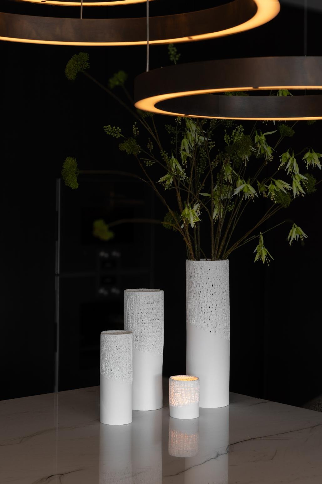 Neben dem Teelichthalter sind auch 3 passende Manel-Vasen erhältlich.