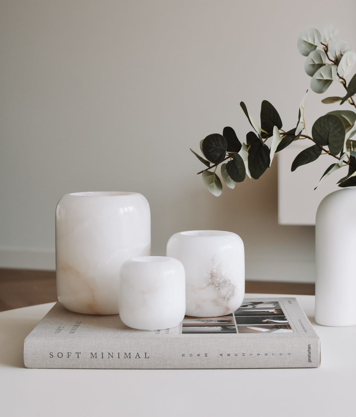 Das Teelicht ist aus Alabaster gefertigt und erhält den luxuriösen Look durch die traditionelle Herstellungsweise. Jedes Exemplar wird von Hand gefertigt, sodass kleine Unvollkommenheiten Teil des Produkts sind.