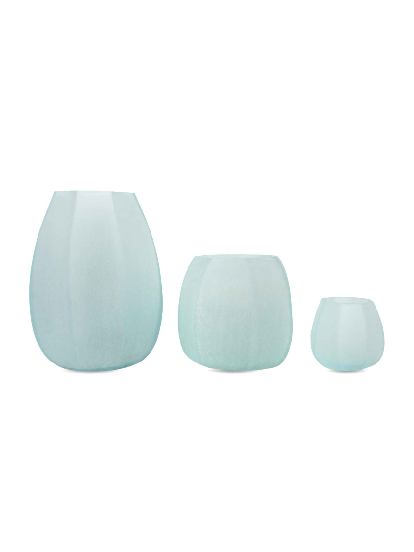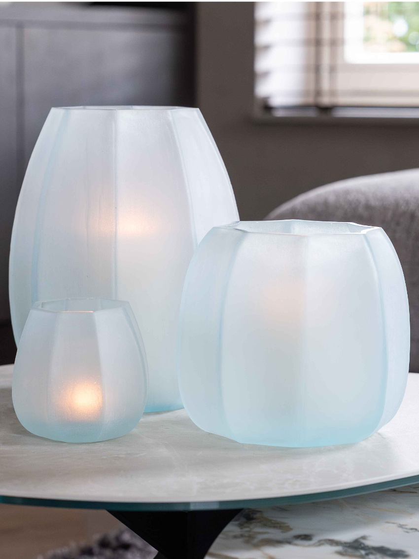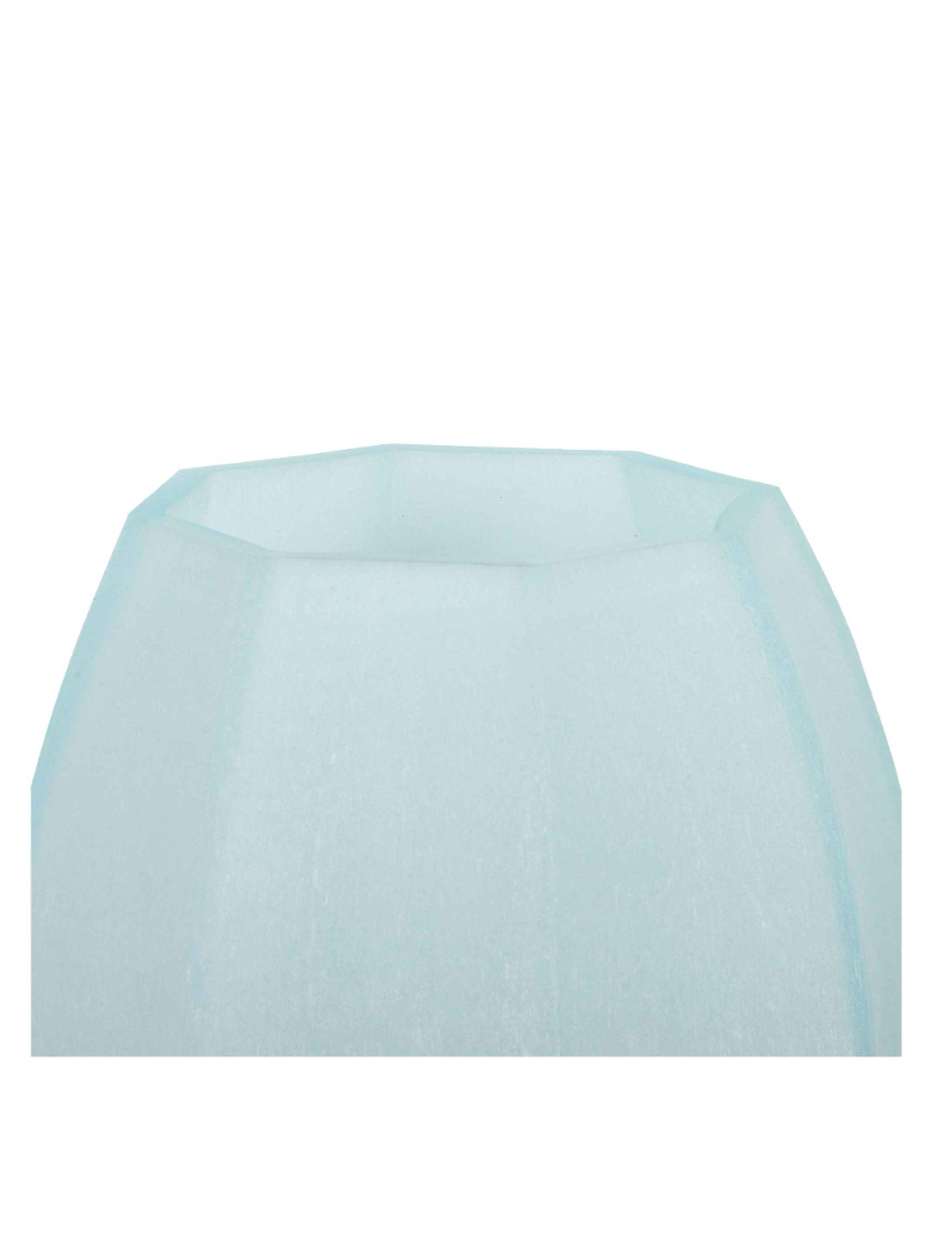 Das Teelicht hat eine moderne Blue-Farbe und erhält den luxuriösen Look durch die traditionelle Herstellungsweise. Jedes Stück ist mundgeblasen und handbearbeitet, daher sind kleine Unvollkommenheiten Teil des Produkts.