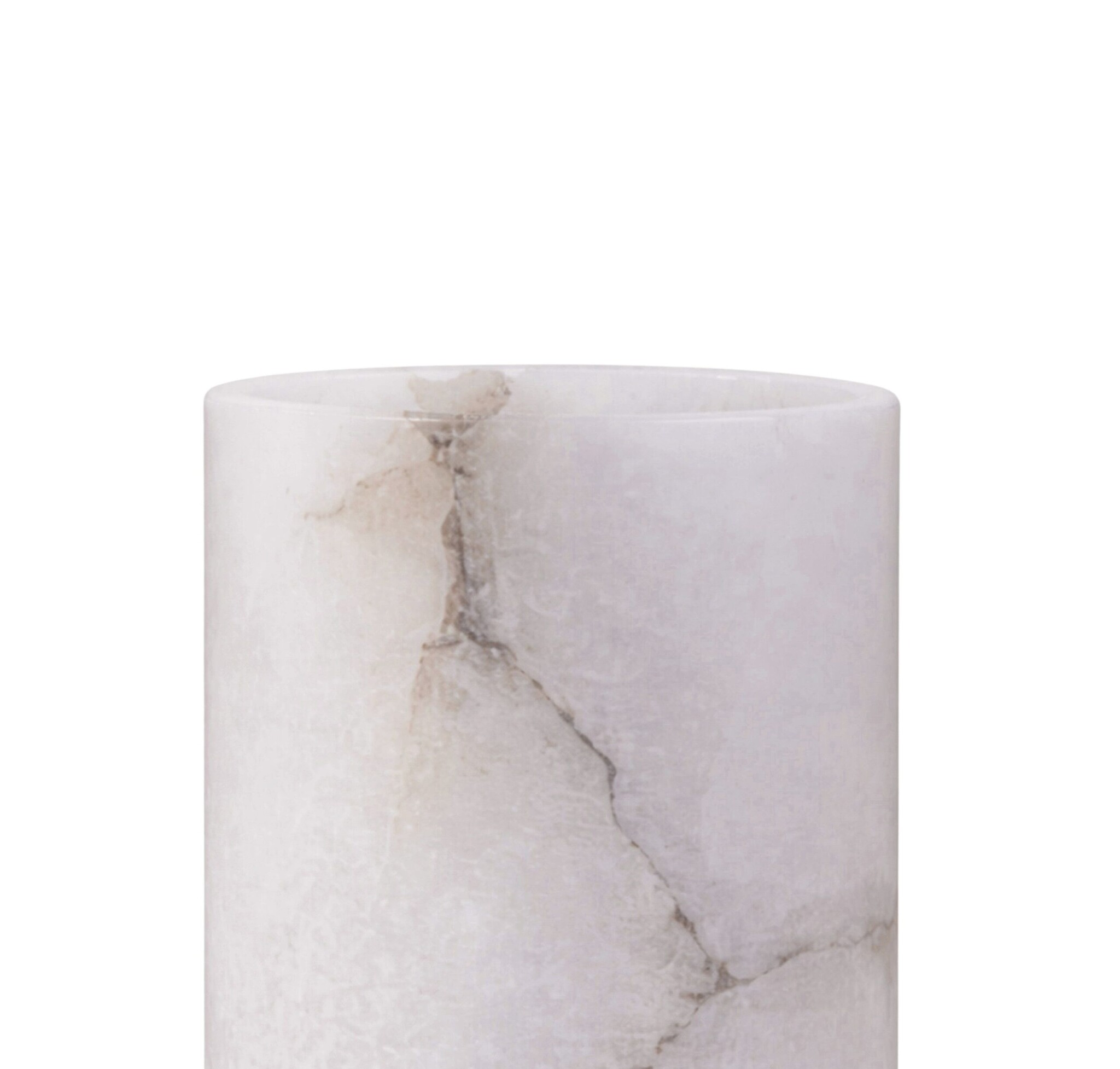 Ein schöner Teelichthalter aus mattem Alabaster, der die Olvar-Kollektion von Alabaster-Windlichtern ergänzt.