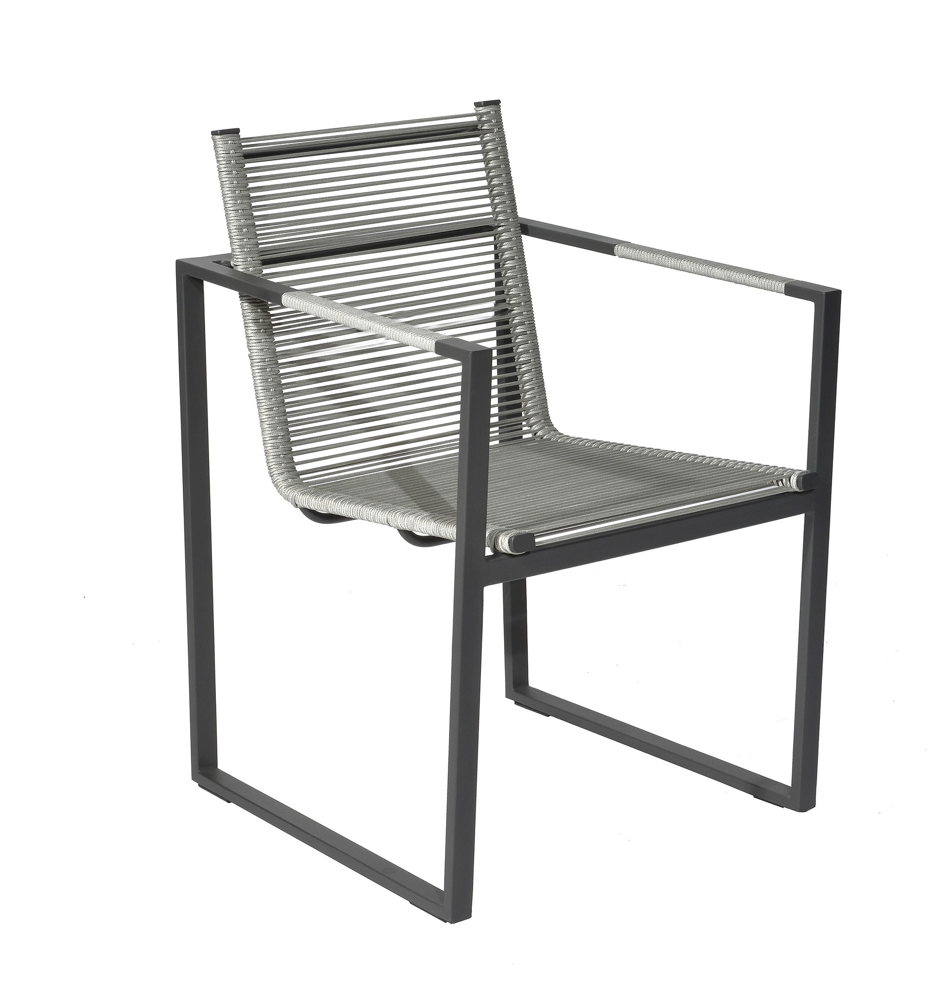 Der Andria Stuhl von Borek hat ein sehr schlankes Design, ist leicht und hat eine warme, natürliche Ausstrahlung. Ein pulverbeschichteter Aluminiumrahmen in der Farbe Anthrazit in Kombination mit Ardenza Rope, in den Farben Eisengrau oder Anthrazit. Das Seil besteht aus einem thermoplastischen Kunststofffaden. Sowohl der Kern des Drahtes als auch der Draht selbst sind durch und durch gefärbt. Dieses Material ist wasserabweisend, UV-beständig und schimmelresistent. Das Seil lässt sich leicht mit Borek Fabric Cleaner reinigen und nach der Reinigung kann das Seil mit dem Fabric Protector geschützt werden. Der Stuhl kann mit verschiedenen Tischen aus der Borek-Kollektion kombiniert werden. Für noch mehr Sitzkomfort ist für den Stuhl ein Allwetter-Sitzkissen erhältlich. Design von Studio Borek.