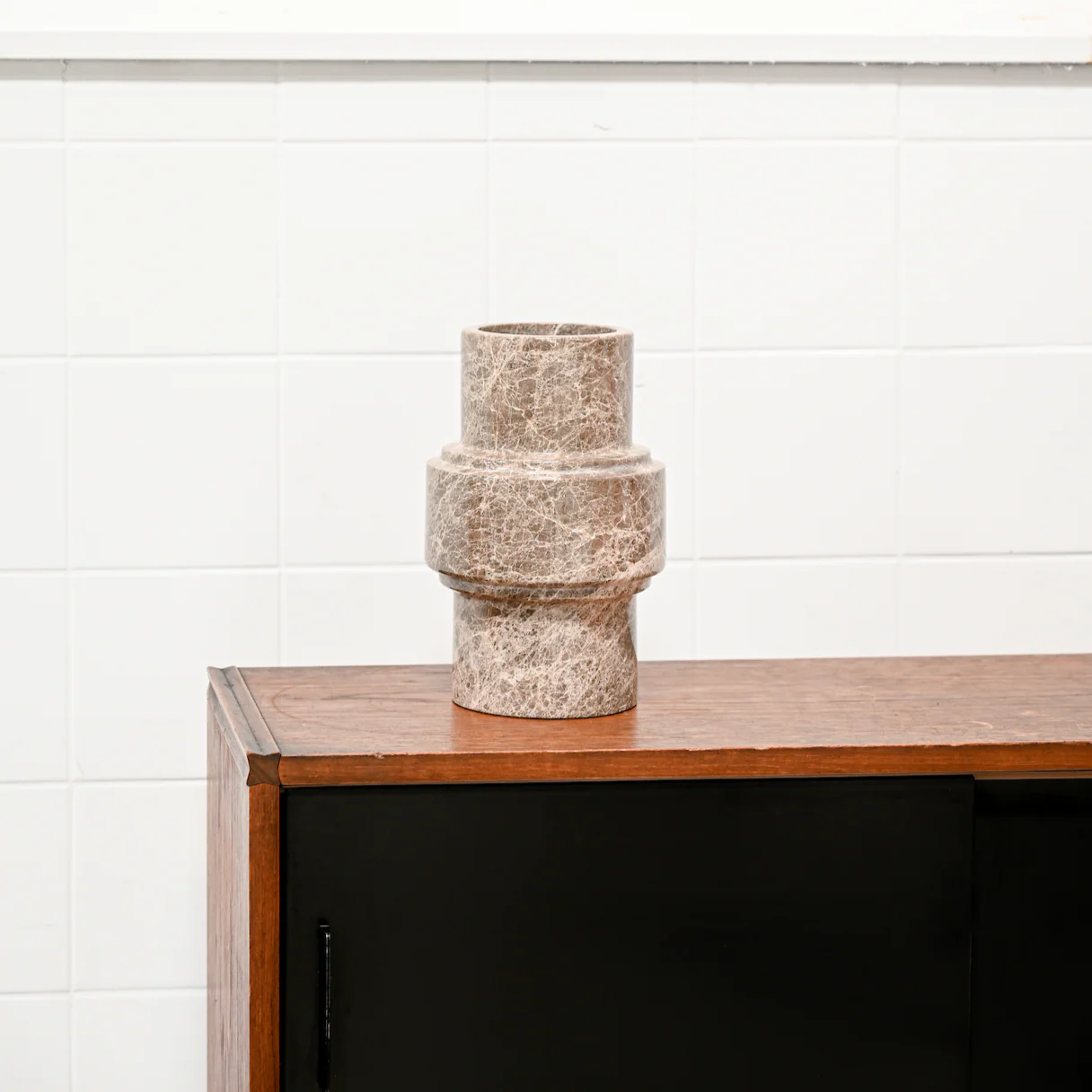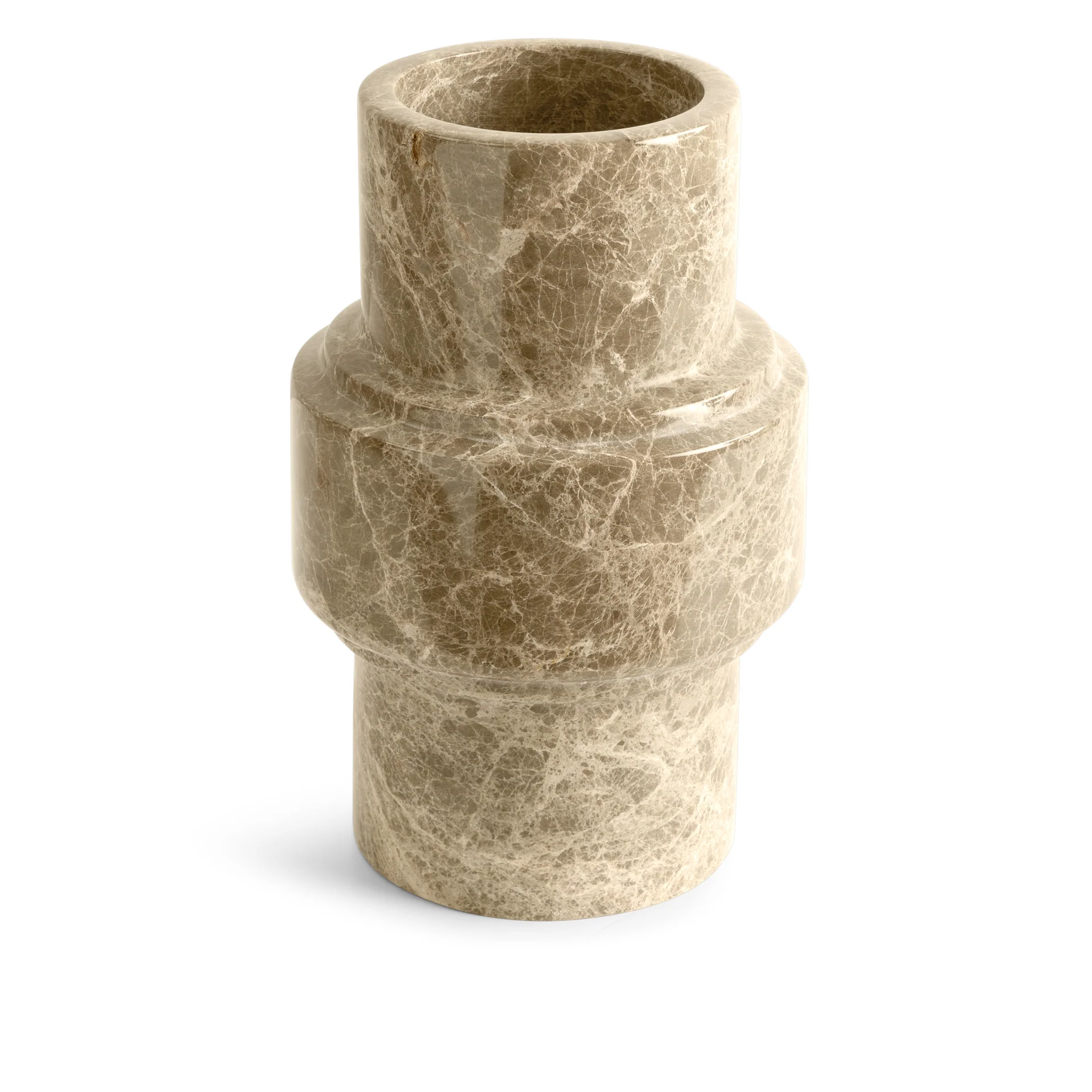 Verleihen Sie Ihrem Zuhause mit 'Column' eine luxuriöse Note – einer Vase aus braunem Marmor, die gleichzeitig als skulpturales Dekorationsobjekt dient. Ob für Trockenblumen oder als ausdrucksstarkes Statement für sich allein, das zeitlose Design verleiht jedem Interieur eine dezente Eleganz.