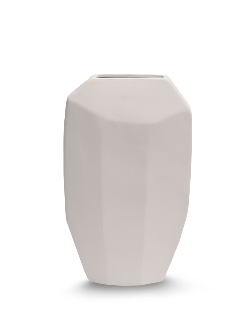 Die Vase hat eine moderne 'Grey White'-Farbe und erhält ihr luxuriöses Aussehen durch die handwerkliche Herstellung. Jedes Exemplar ist handgefertigt, so dass kleine Unregelmäßigkeiten zum Produkt gehören.