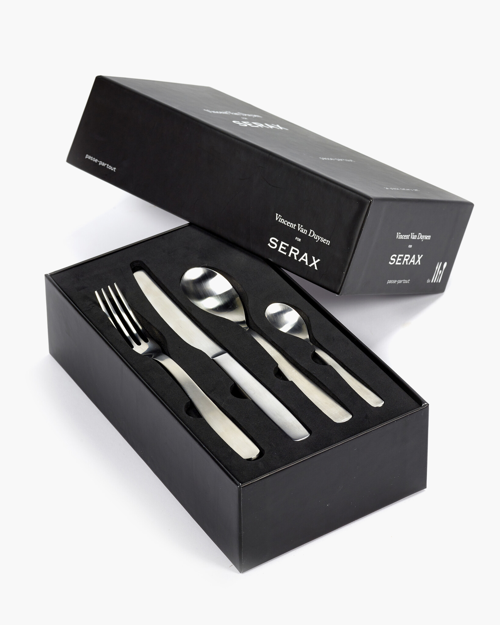 Dieses Besteckset hat nicht nur ein schlichtes und minimalistisches Design, sondern wird auch in einer praktischen Geschenkbox geliefert. Das Besteck besteht aus hochwertigem Edelstahl und ist Teil der Passe-partout-Kollektion, die von Vincent van Duysen entworfen wurde. Die Bestecksets sind in einer luxuriösen giftbox verpackt.