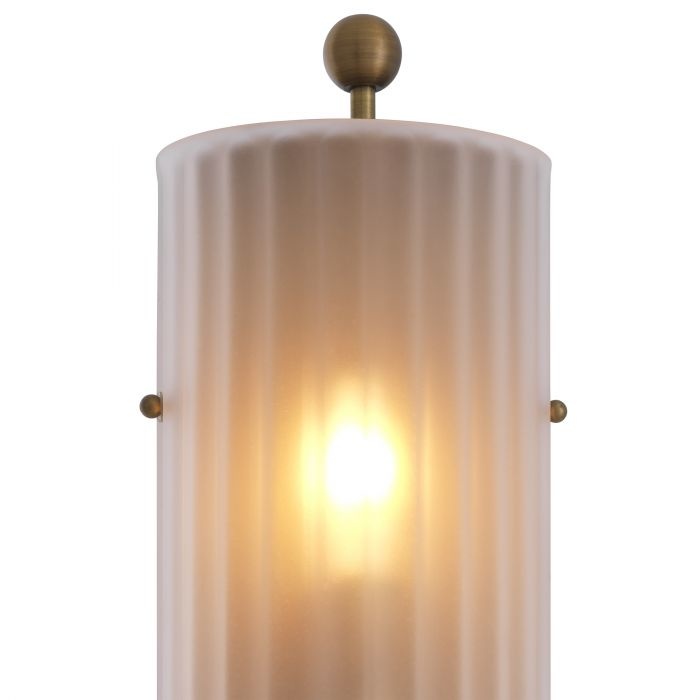 Mit einem Hauch von Art Deco schafft die Wandleuchte Juno mehr Tiefe und visuelles Interesse in Ihrem Interieur, während sie ein warmes, sanftes Licht verbreitet, das durch den gerippten Schirm aus Milchglas dringt. Die Leuchte ist aus antikem Messing gefertigt und oben und unten mit einem Endstück verziert.