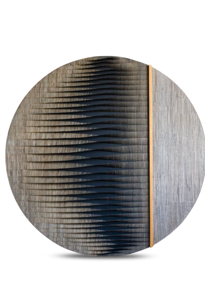 Das Wandpaneel „Odin“ ist ein dekoratives Paneel mit 3D-Formen aus getrockneter, gedrehter Wasserhyazinthe. Das macht jedes Stück zu einem Unikat. Der Rahmen ist aus natürlichem Eichenholz gefertigt.