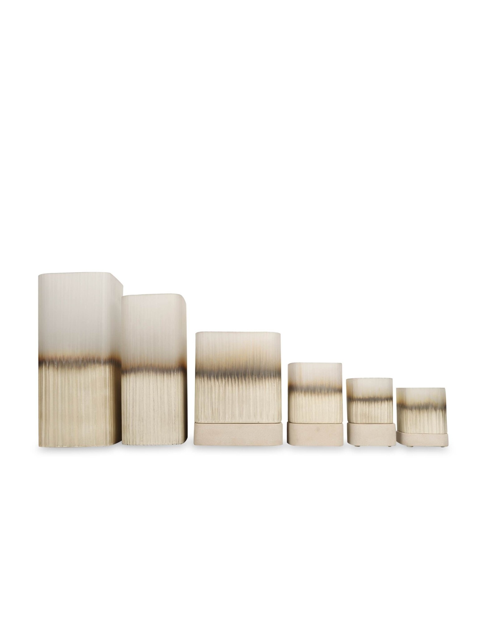 Das Windlicht Ine hat eine moderne Farbe und erhält sein luxuriöses Aussehen durch die handwerkliche Herstellungsmethode. Jedes Exemplar ist mundgeblasen und handgefertigt, sodass kleine Unvollkommenheiten Teil des Produkts sind. Das Windlicht ist in fünf verschiedenen Größen erhältlich. Kombinieren Sie verschiedene Größen und vervollständigen Sie so Ihr Styling auf einmal. Das Glas steht auf einem Sockel aus Sandstein, der ihm ein luxuriöses Aussehen verleiht.