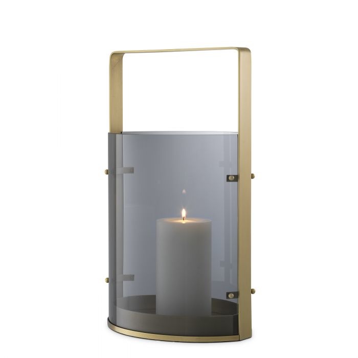 Schaffen Sie eine warme und einladende Atmosphäre mit Hurricane Reid S, die entweder einzeln oder in Gruppen angeordnet werden können. Fügen Sie einfach eine Stumpenkerze hinzu und lassen Sie das Kerzenlicht Ihr Haus in ein gemütliches Zuhause verwandeln. Mit ihrem Gestell aus antikem Messing und dem Schirm aus Rauchglas ist sie auch tagsüber ein dekoratives Objekt.