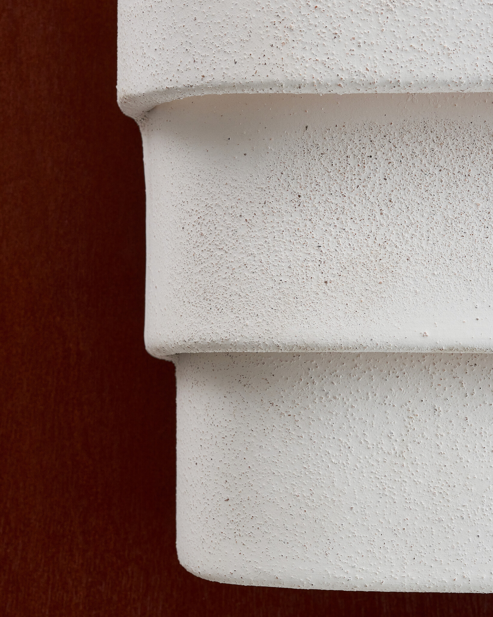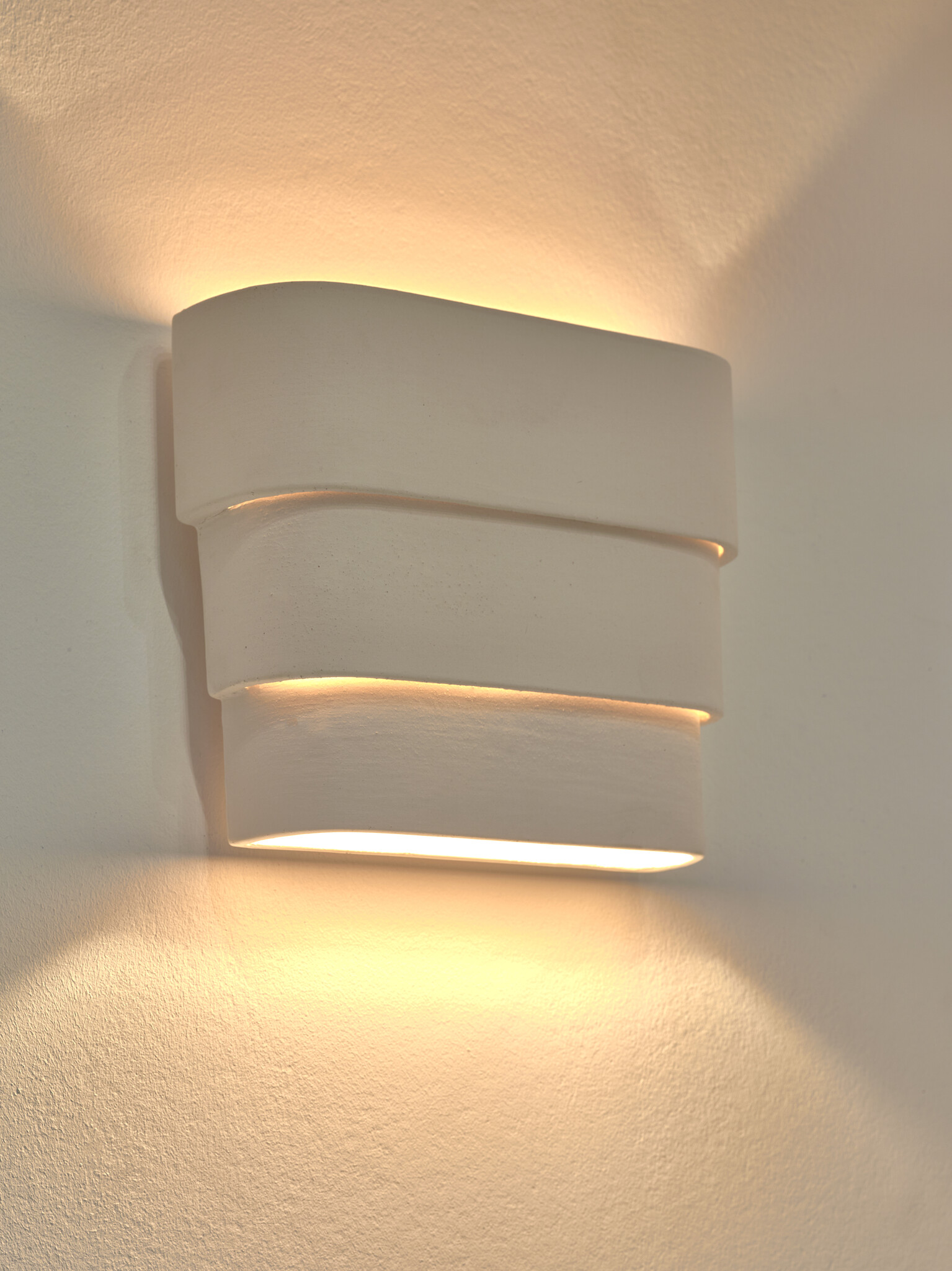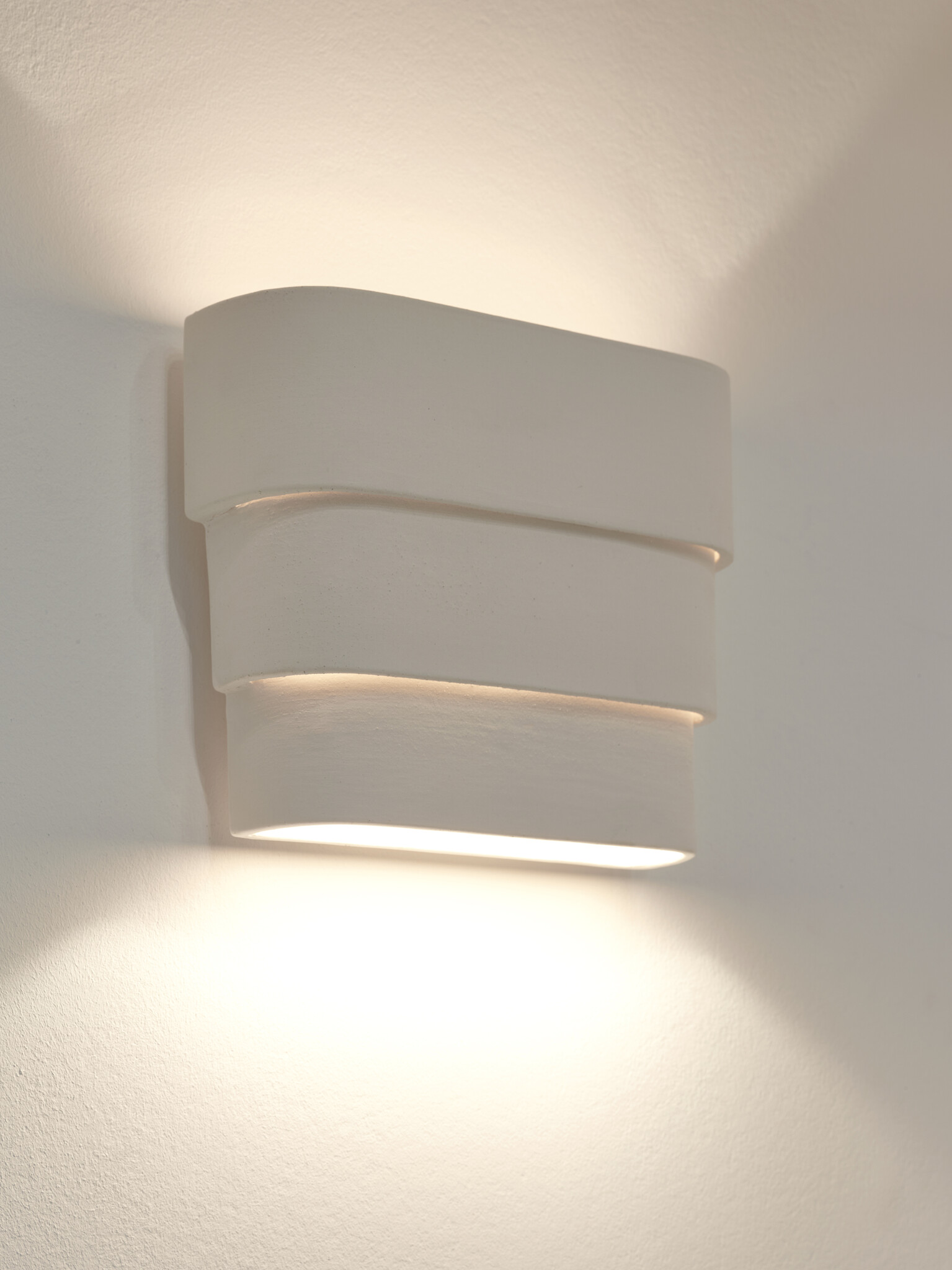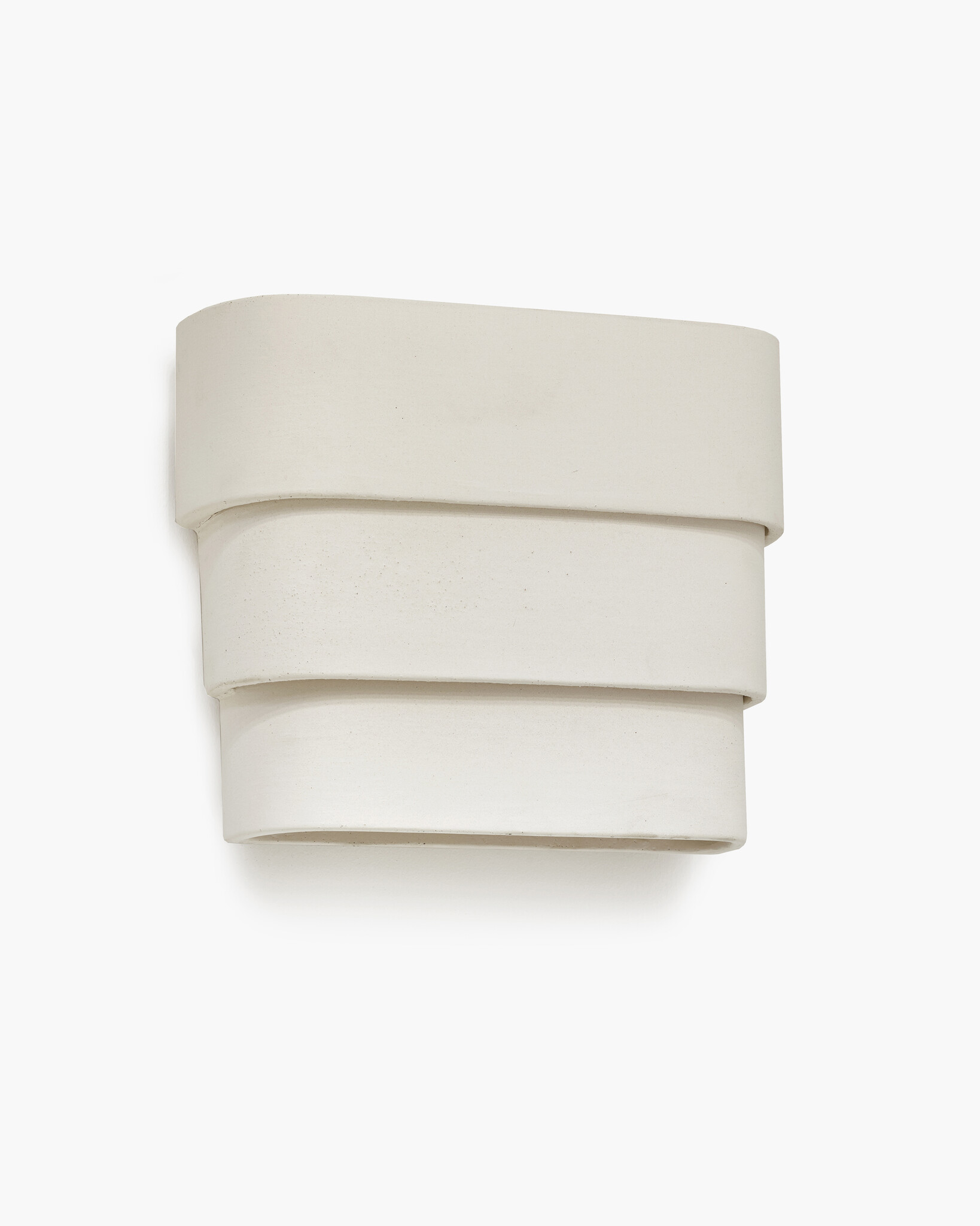 A unique wall light in beige stone, made from different strips of clay. This Louis wall light highlights the handcrafted character of the piece.