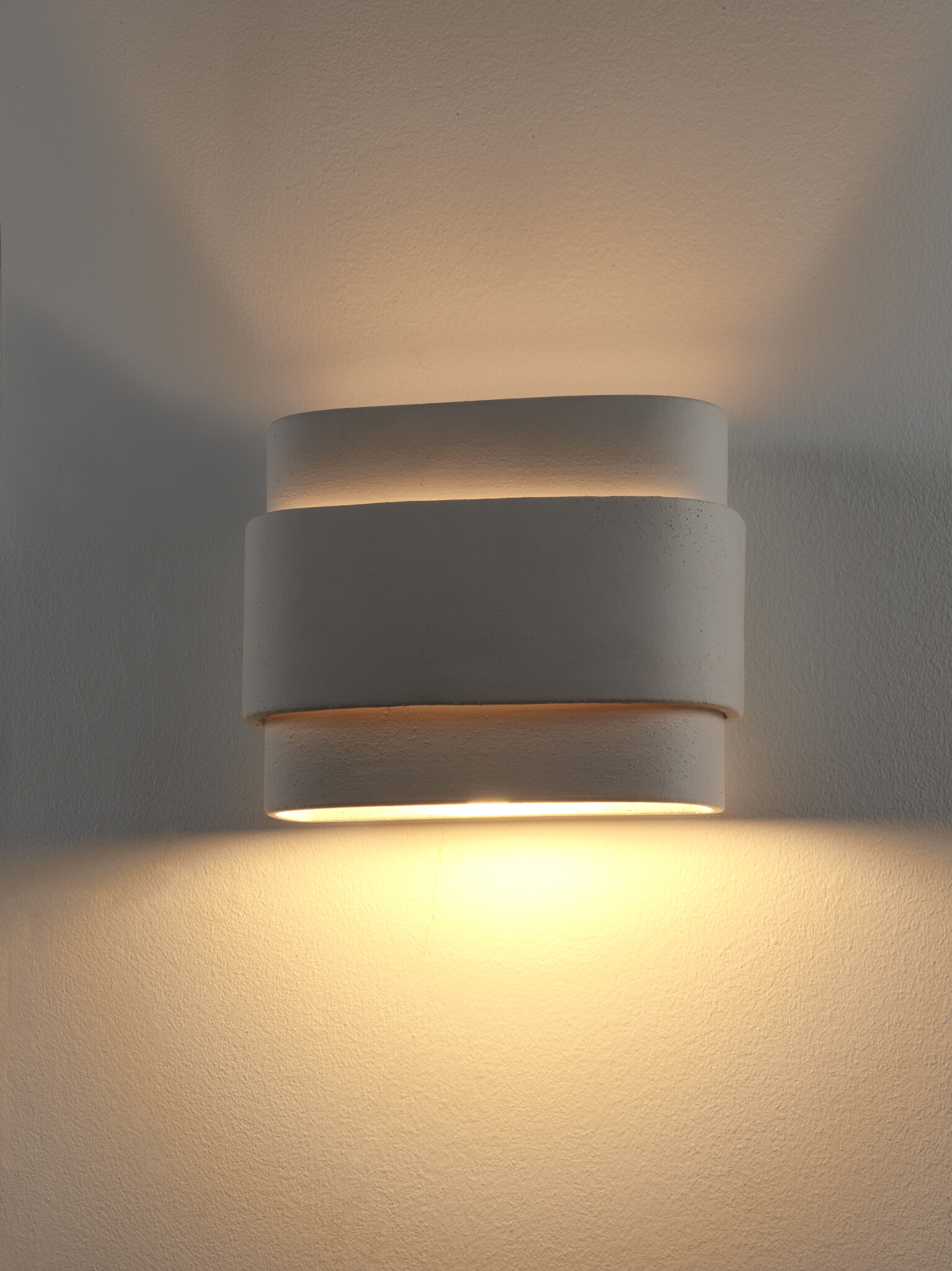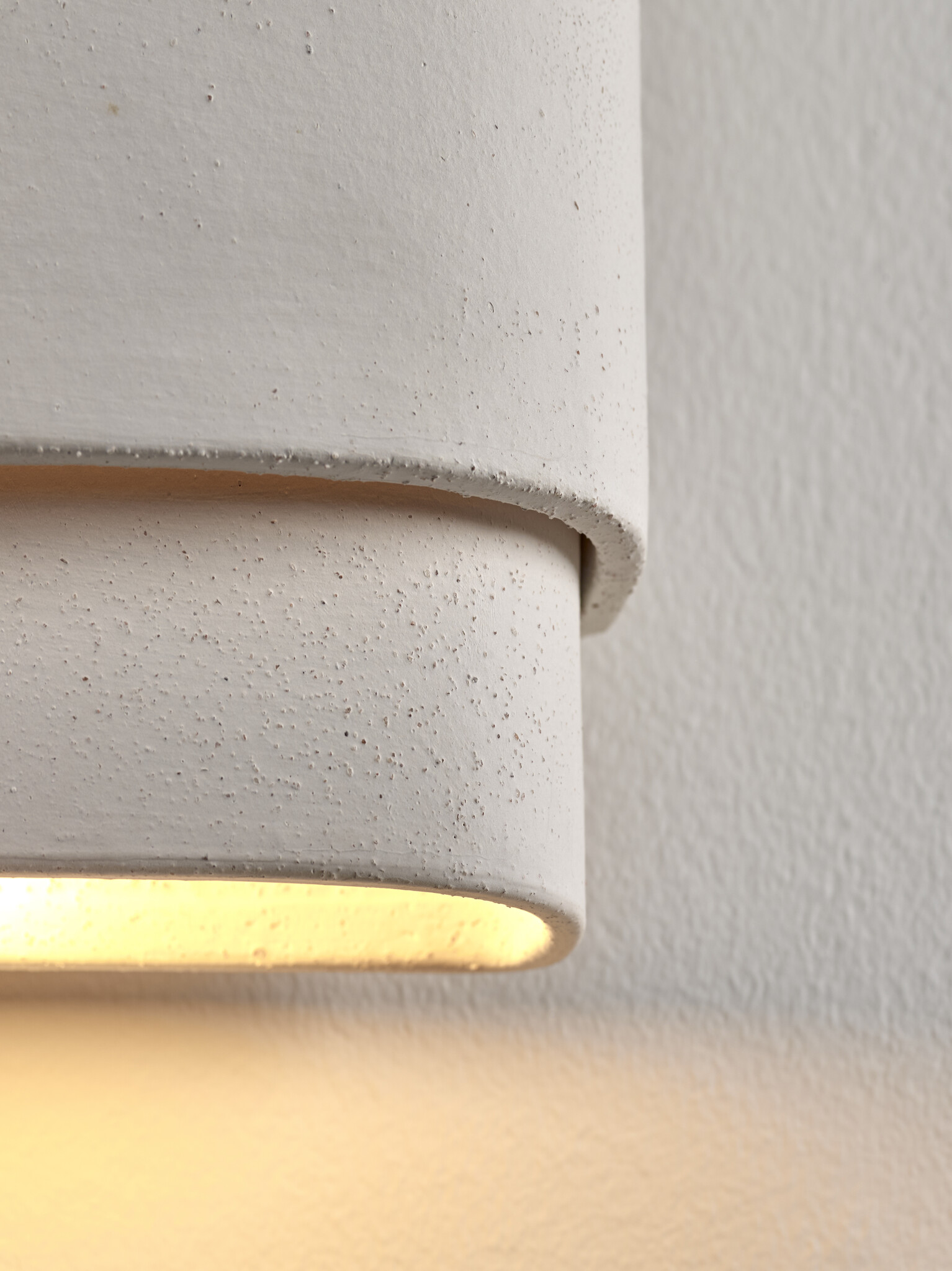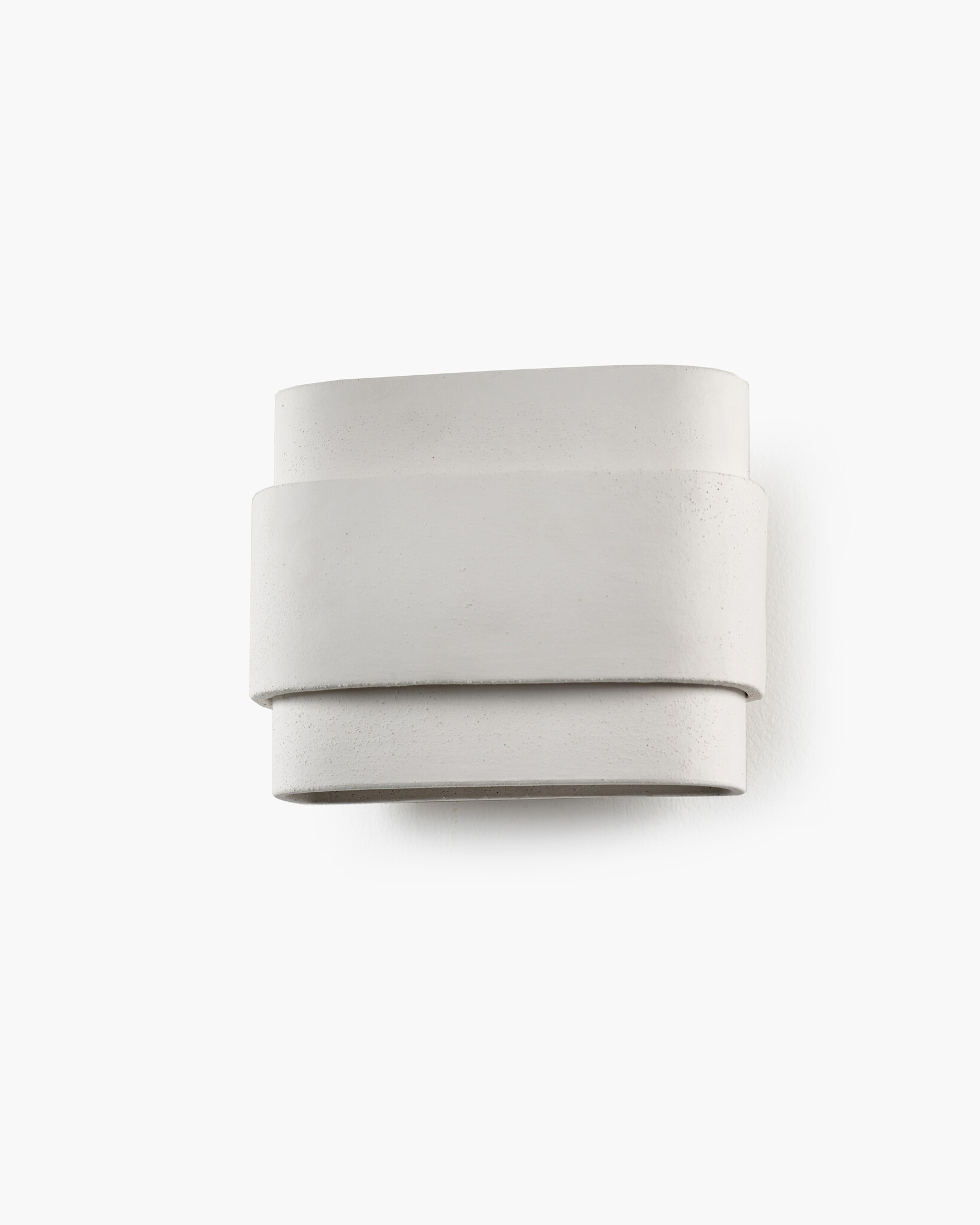 Unique beige-colored stone wall light made from different strips of clay. This Louis wall light brings the handmade character to the fore.