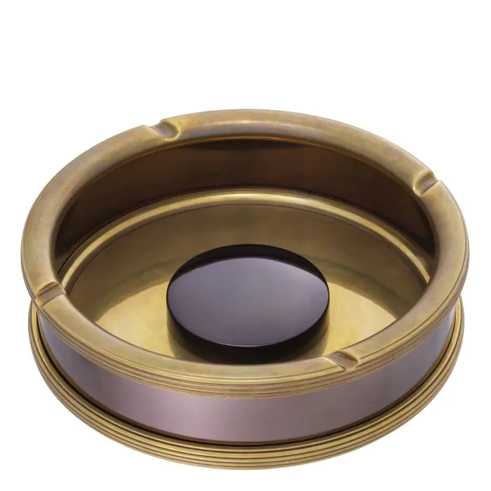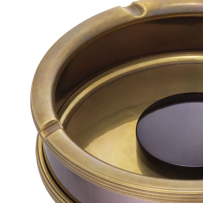 Ashtray Ella provides your table with a decorative and smart solution to disposing of cigarette ends, as well as being easy to clean. Provided with 4 notches, this exceptional value bronze finish ashtray features a stylish vintage brass rim at the top and the bottom. No smokers in the house? This chic piece also makes for a perfect storage item for trinkets and keys.