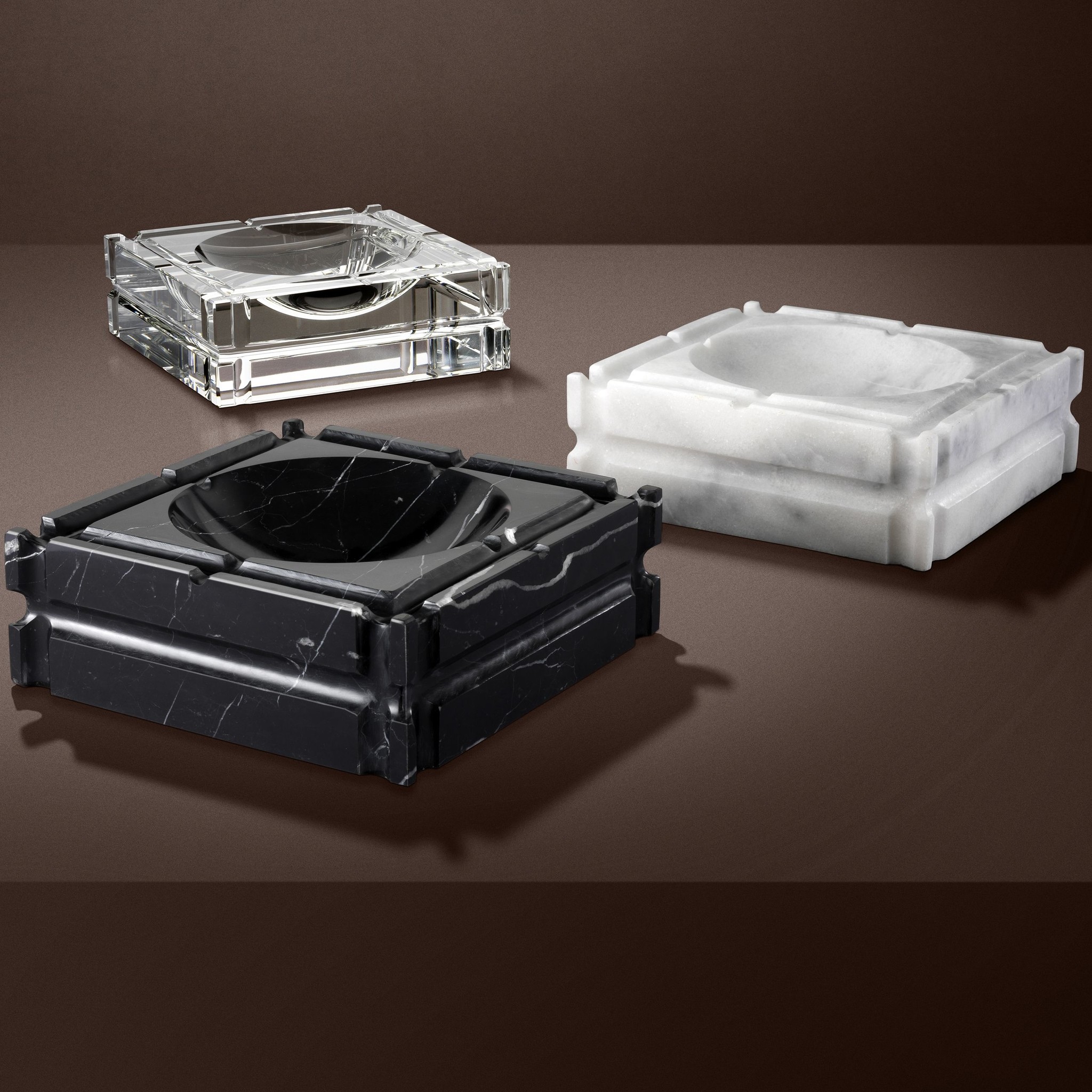 Accessorize your interior in style with the Nestor Ashtray. This premium quality black marble ashtray features four cigarette rests. Square in shape, it takes influence from the elegant silhouettes of Art Deco design.