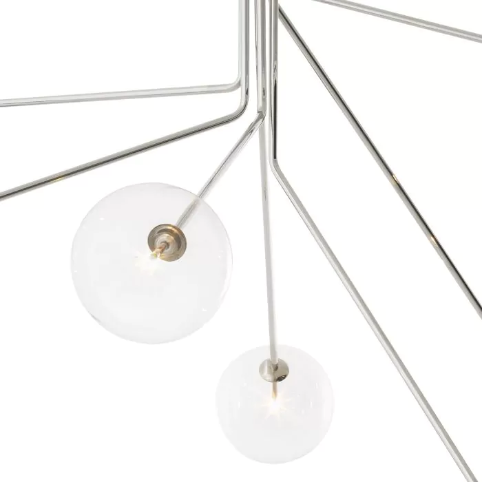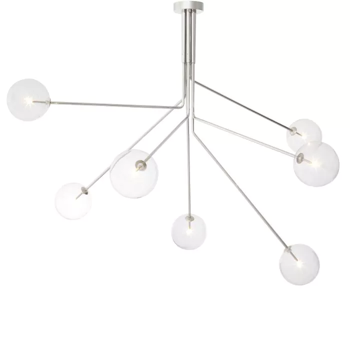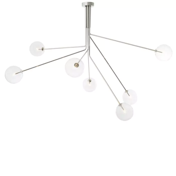 A minimalist Sputnik design with slender lines and a simple colour palette make Chandelier Topaz a perfect choice for both modern and vintage style interiors. Thanks to its striking fixture with nickel finish, this pendant light with adjustable arms and 7 clear glass globe shades is guaranteed to be a focal point of any room.