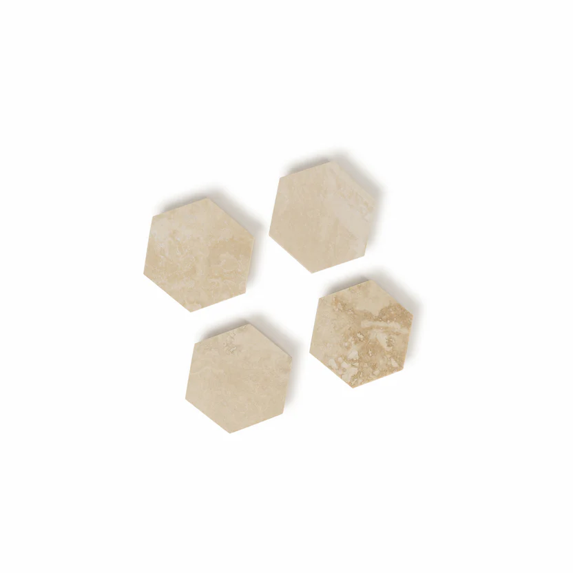 Protect your surfaces effortlessly with our travertine hexagon coasters, designed to add a touch of refined elegance to any space. Crafted from premium travertine, each coaster showcases the stone’s unique veining and earthy textures, making them a functional yet striking design feature.