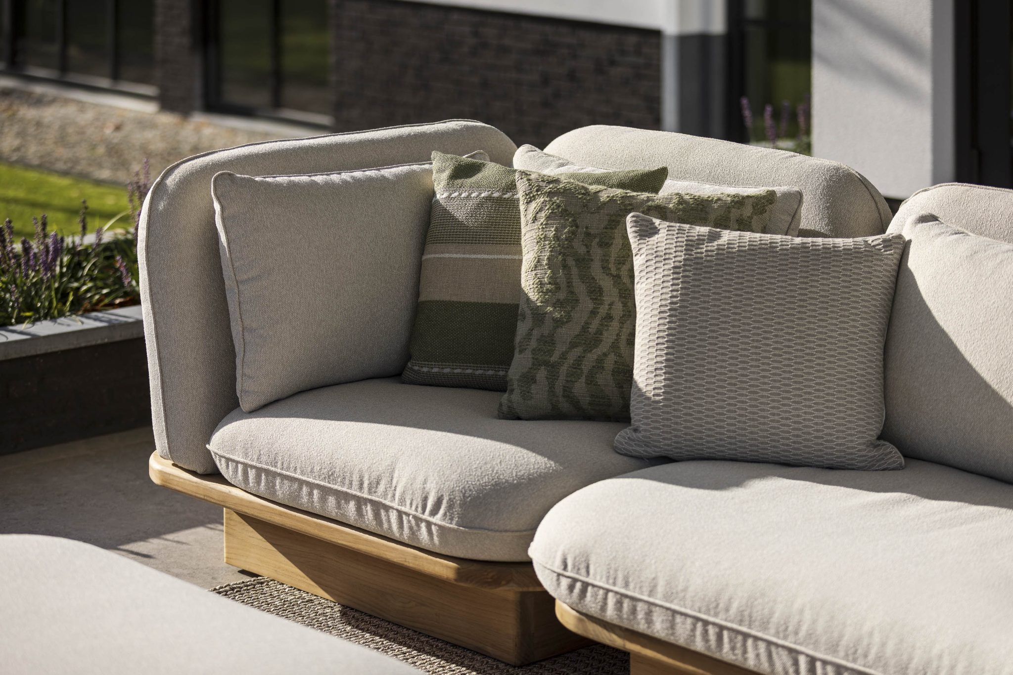 Rimini by Monique des Bouvrie is a modular lounge set that brings calm, comfort, and timeless elegance outdoors. The solid teak base and sand-colored cushions combine sculptural forms with soft warmth. Thanks to its modular design, the layout can be adapted to any space or occasion. Light, airy, and inviting – Rimini effortlessly adapts to your outdoor lifestyle.