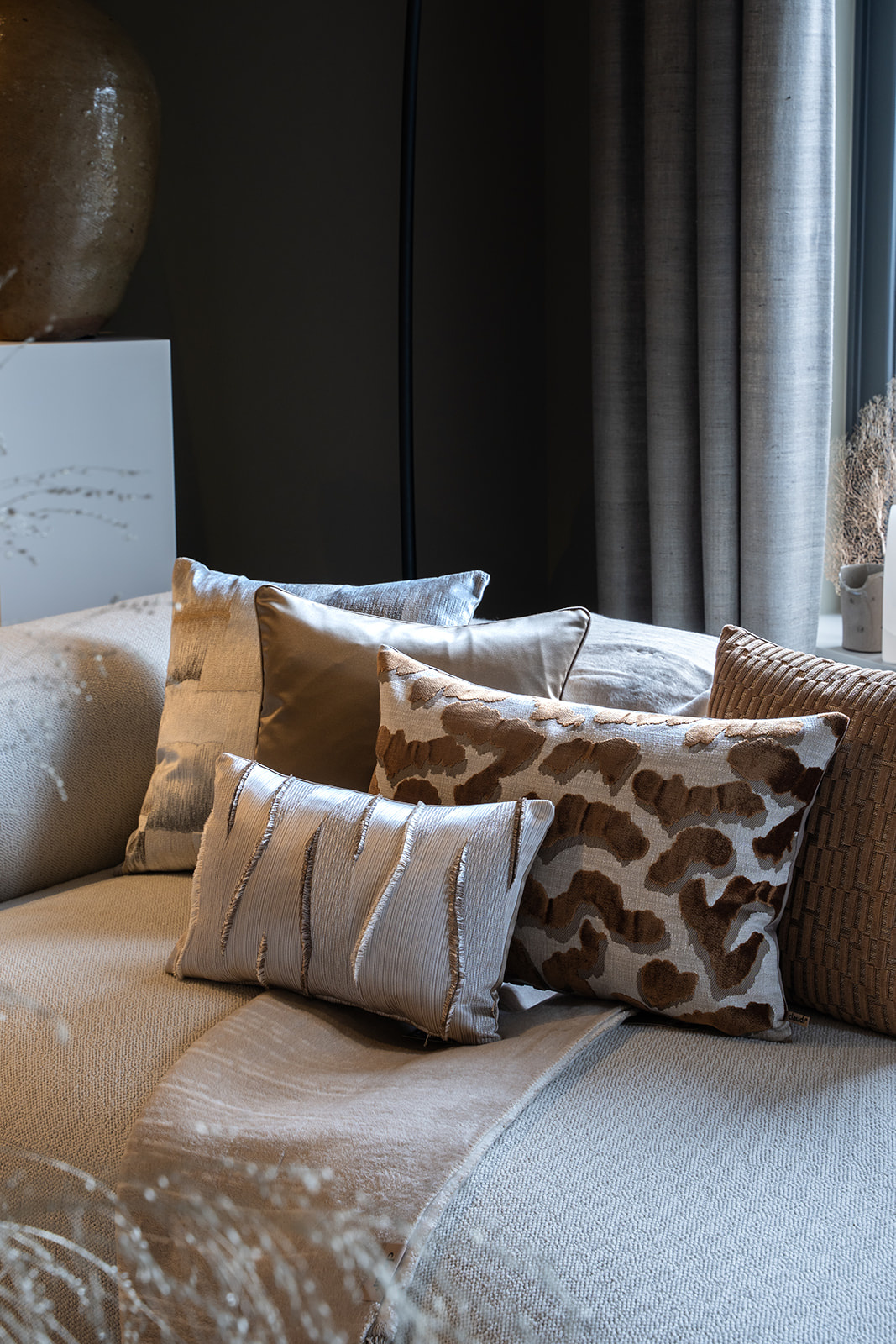 With the decorative cushions from Claudi you can give your basic sofa a luxurious look. You can combine endlessly and even let the sofa move with the seasons; for example white and pastel shades in the spring and warm bronze and gray shades in the autumn!