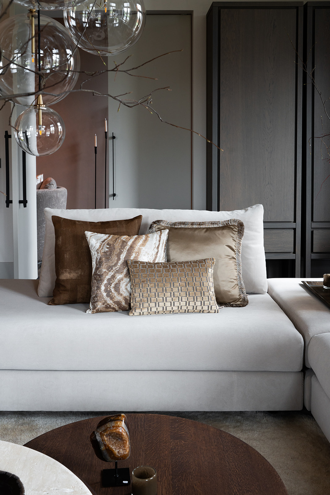 With the decorative cushions from Claudi you can give your basic sofa a luxurious look. You can combine endlessly and even let the sofa move with the seasons; for example white and pastel shades in the spring and warm bronze and gray shades in the autumn!