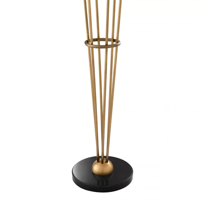 Create a retro-chic focal point in your living space with the Tortora Floor Lamp. This designer lighting in Mid-Century Modern style instantly elevates your room! It features an antique brass finish and 6 white glass globes.